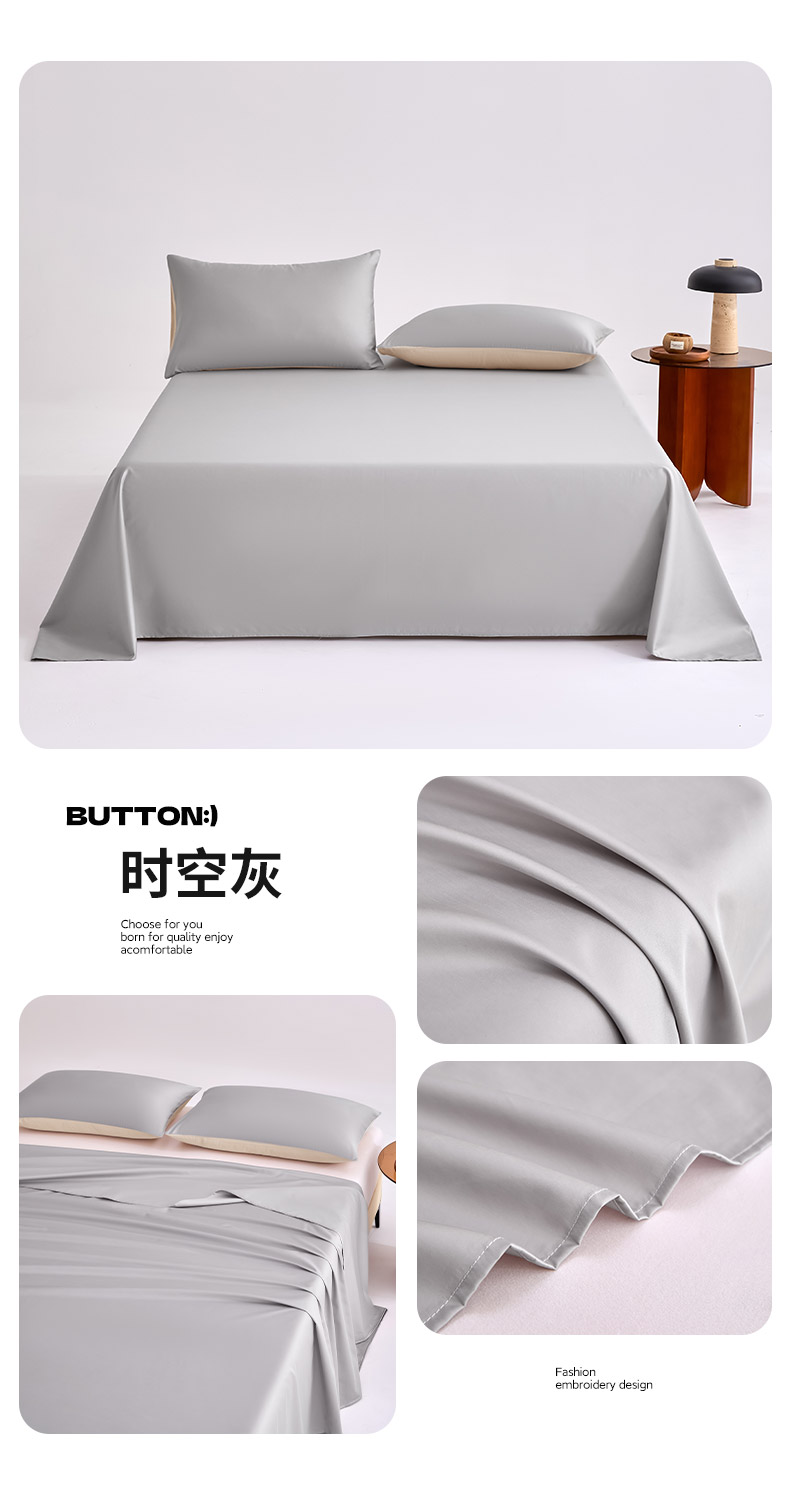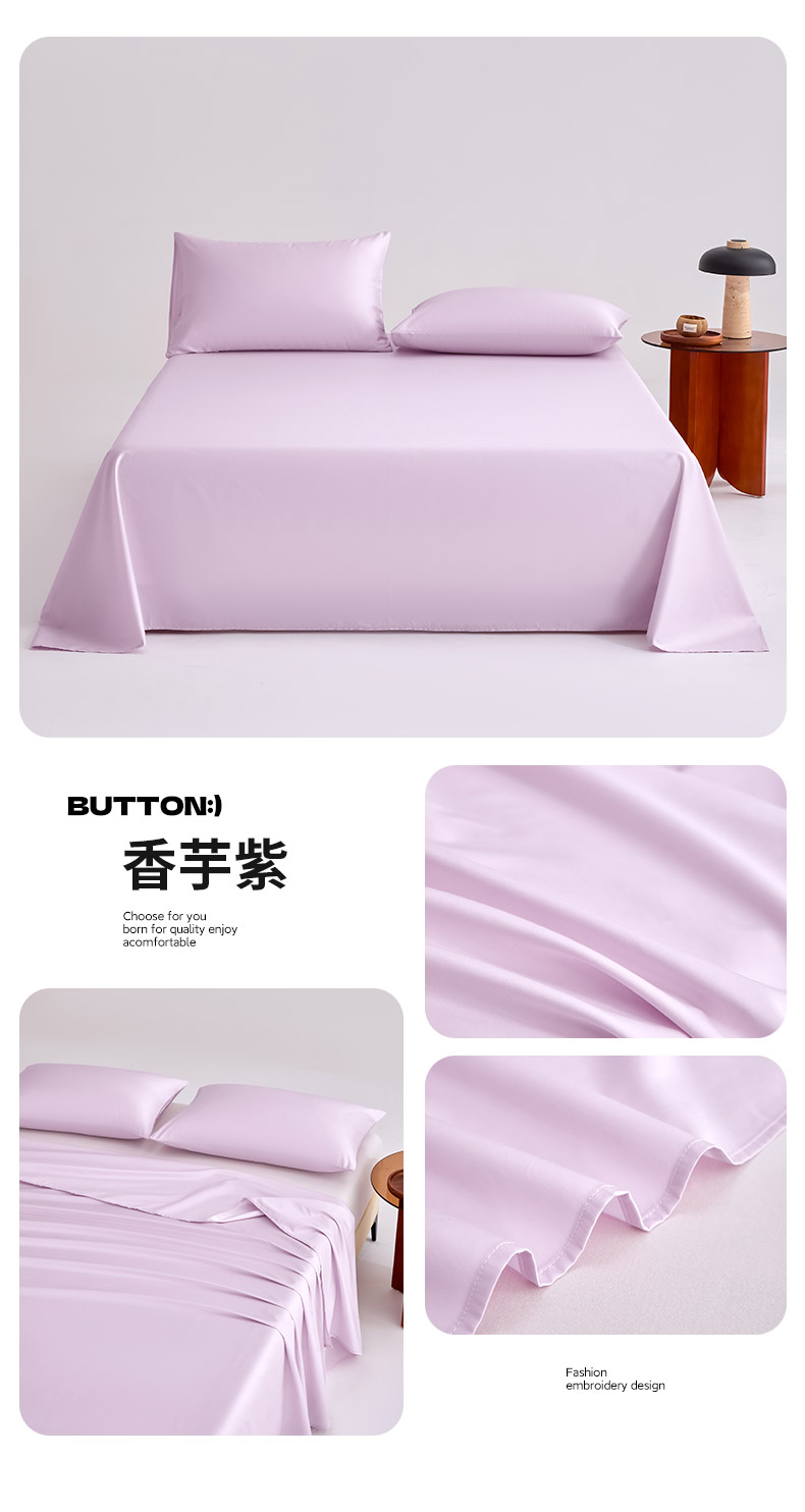 (总)合欢(原天一阁) 2026新款50s双股长绒棉全棉纯棉床单三件套,流苏白,香芋紫,银竹灰,暖心粉,青柠绿,时空灰,水军蓝,香槟金,组合图(仅供展示不可下单)