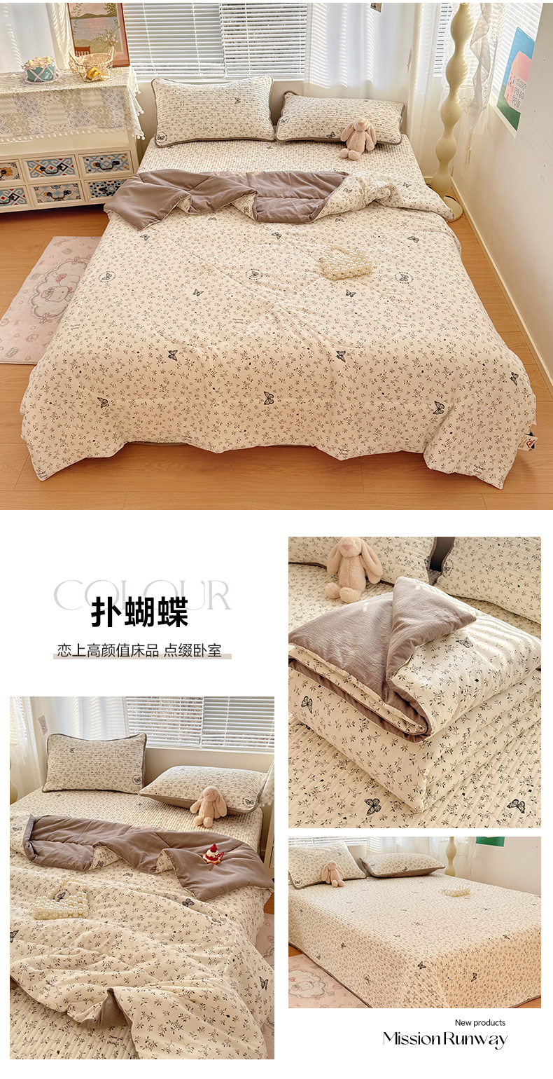 当前位置: 91家纺网 > 商品网购 > 床品套件 > 四件套 > 夏被四件套 > 玉海棠家纺 2026新款A类云感双层纱7A抗菌夏被夏凉被空调被四件套 繁华里