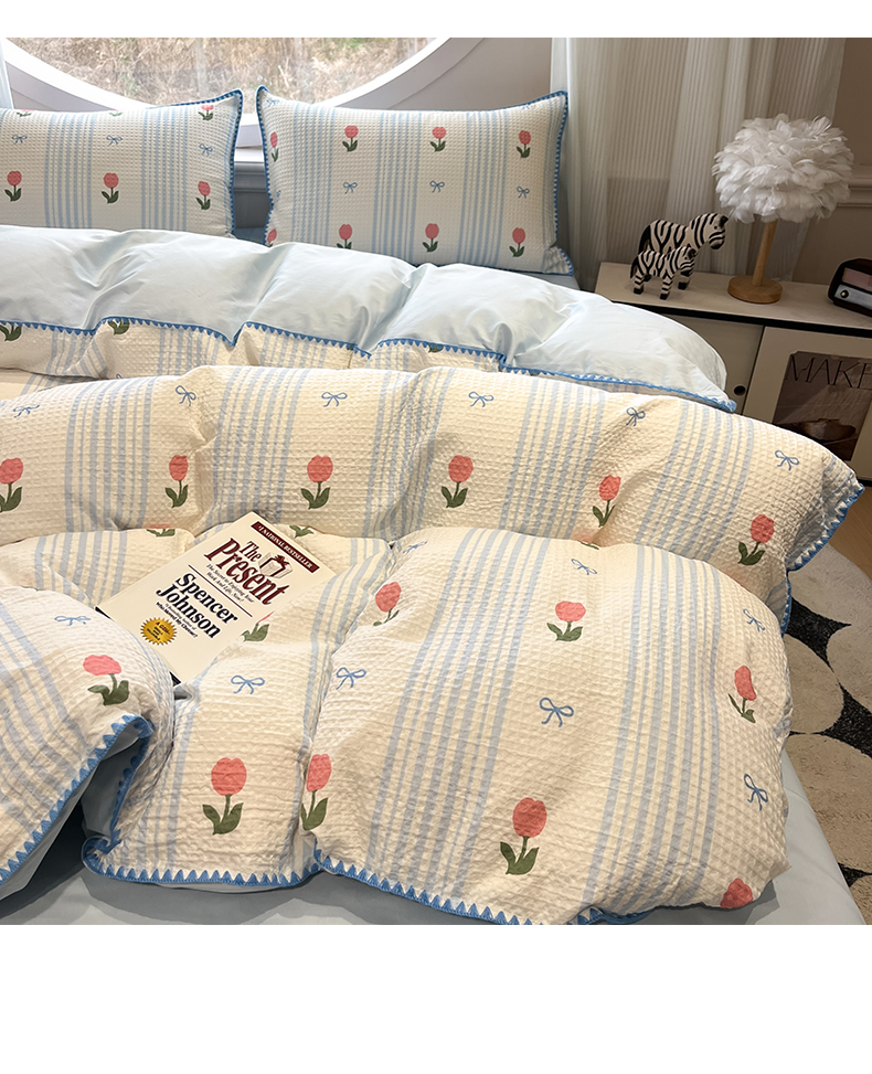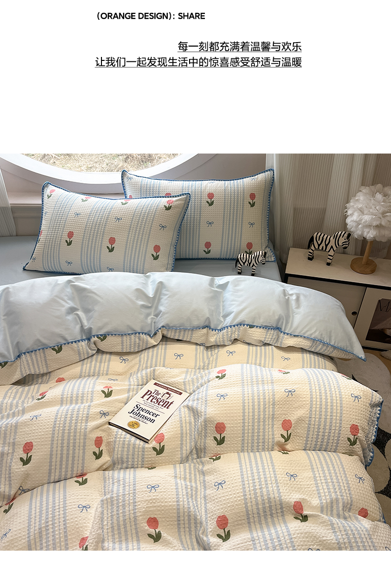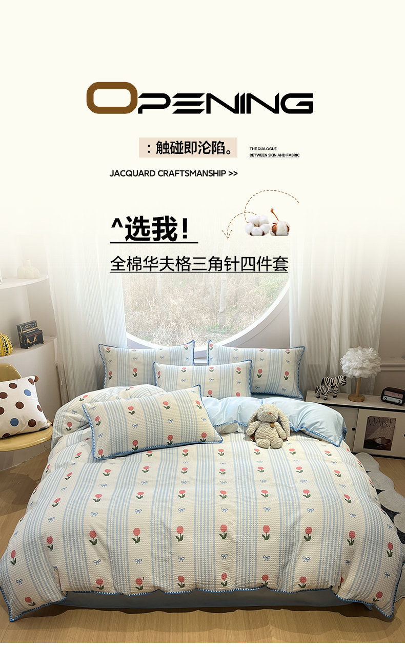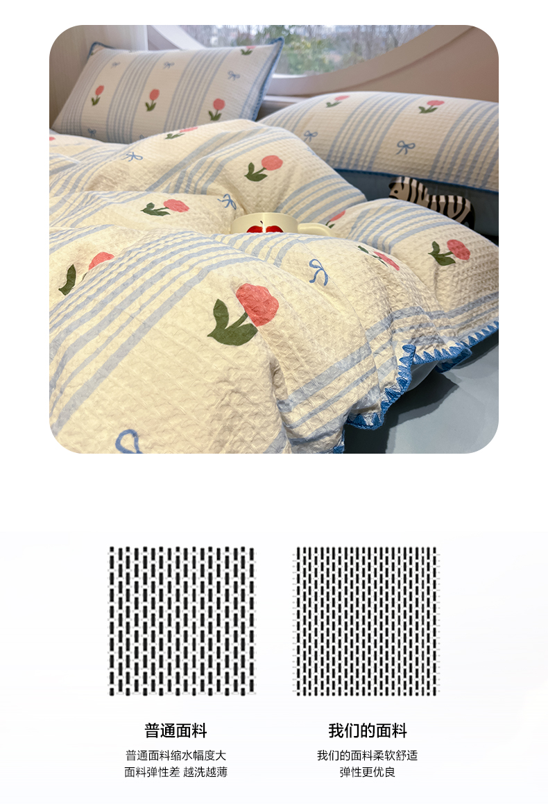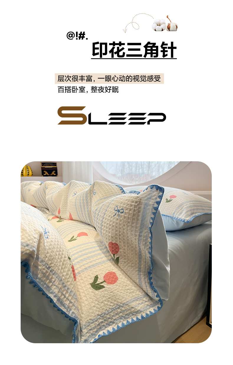 当前位置: 91家纺网 > 商品网购 > 床品套件 > 四件套 > 全棉普通四件套 > 如一 2026春夏新款全棉纯棉华夫格印花三角针工艺四件套 夏朵-蓝