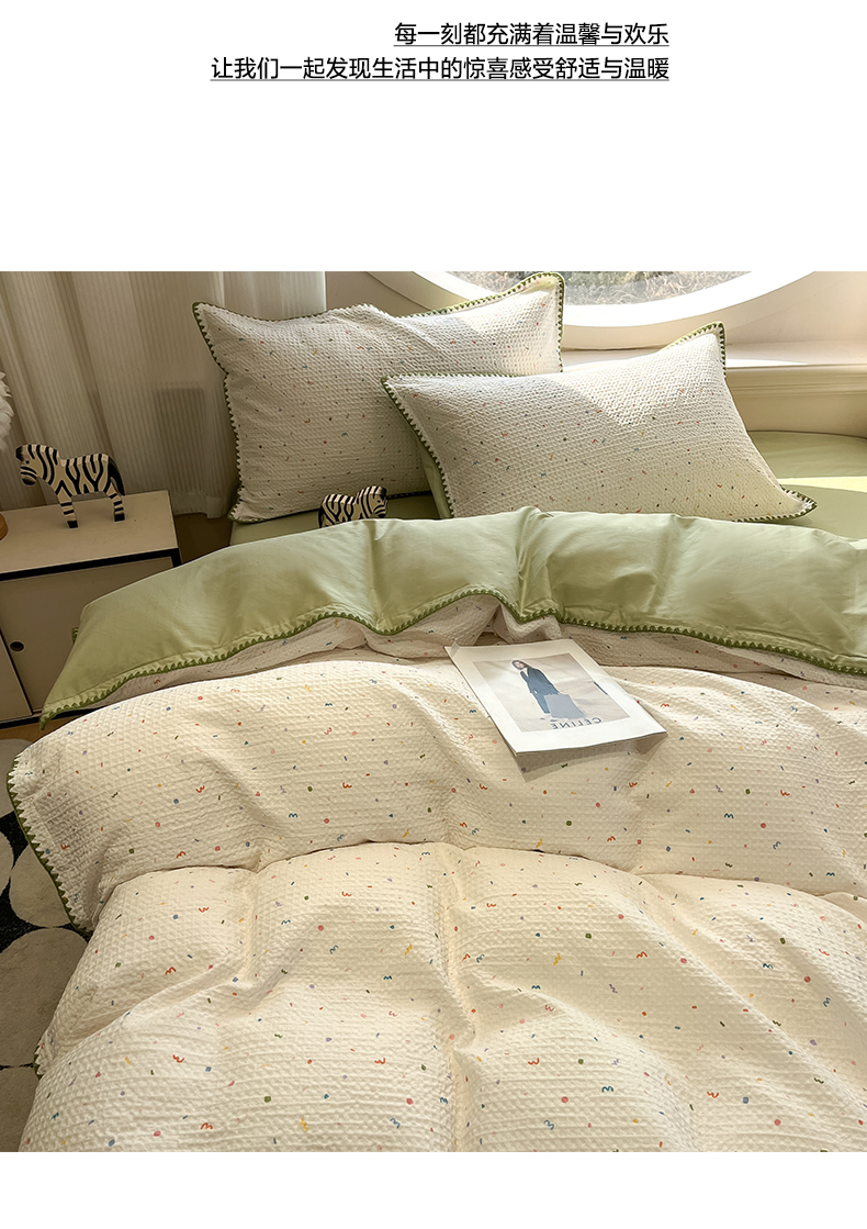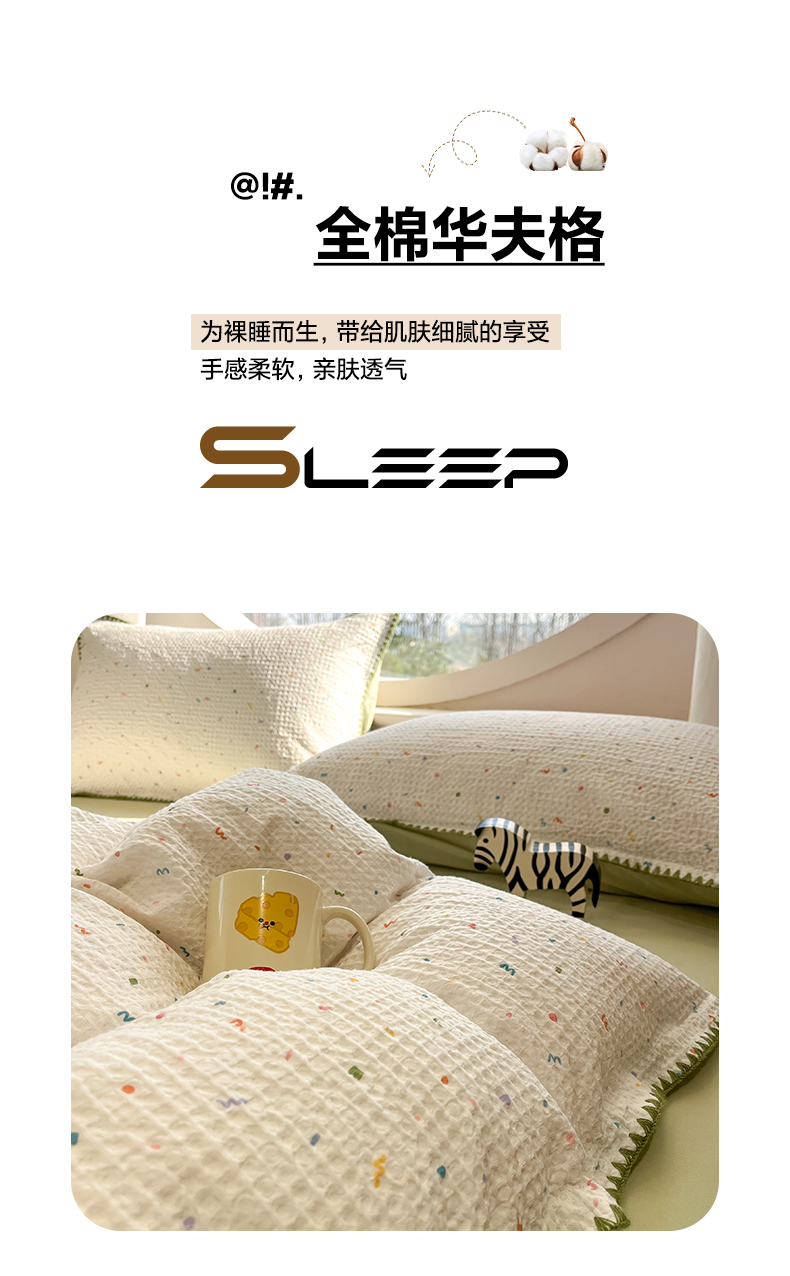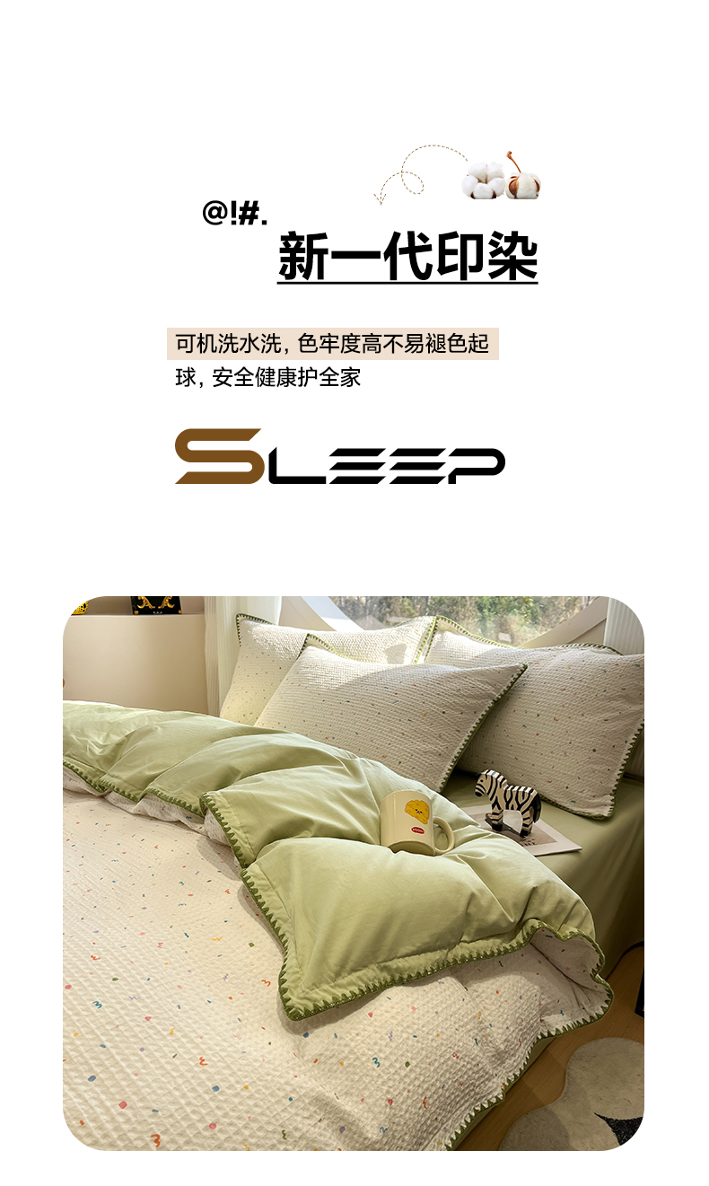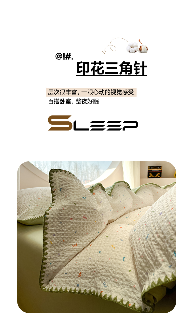 当前位置: 91家纺网 > 商品网购 > 床品套件 > 四件套 > 全棉普通四件套 > 如一 2026春夏新款全棉纯棉华夫格印花三角针工艺四件套 盛夏-绿