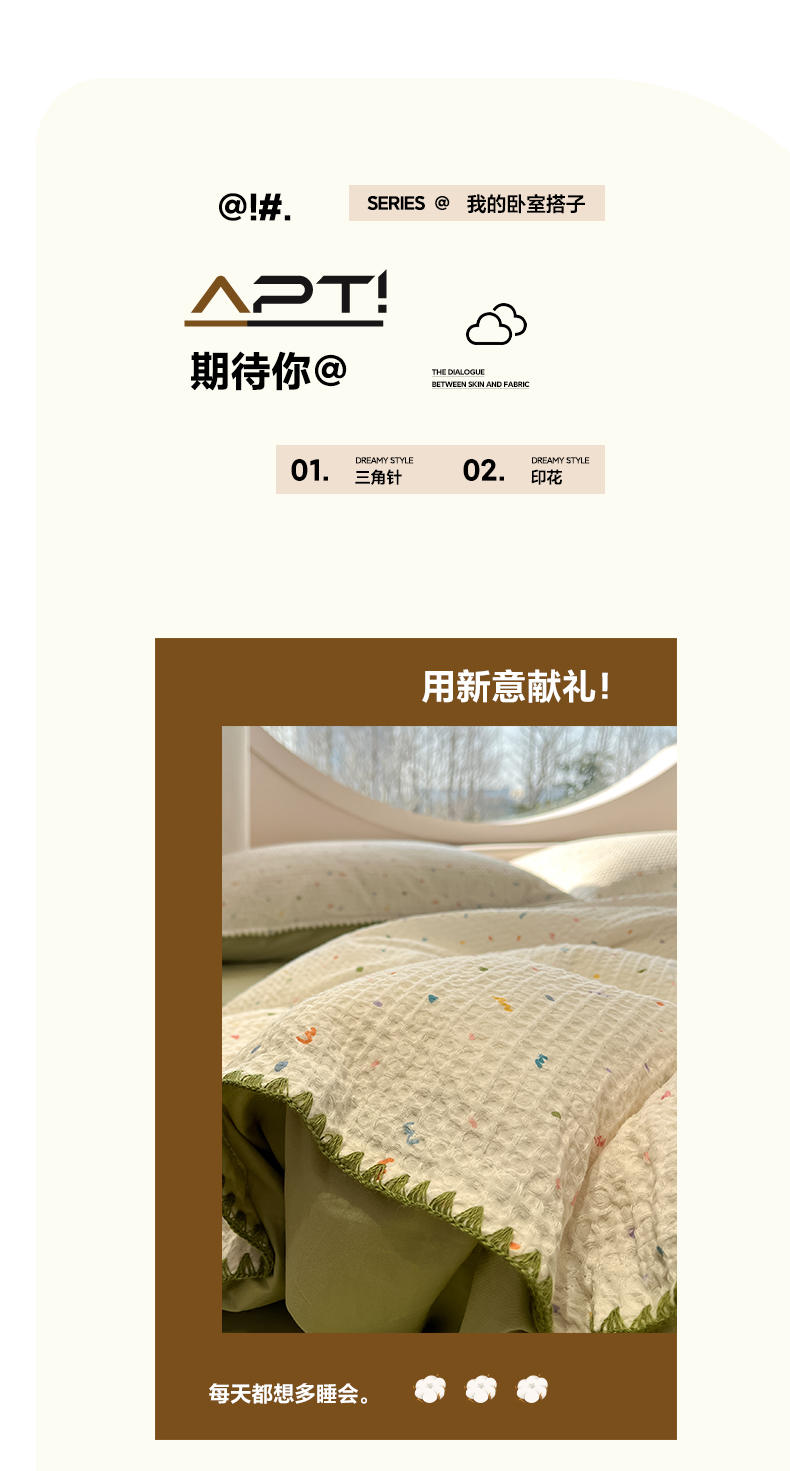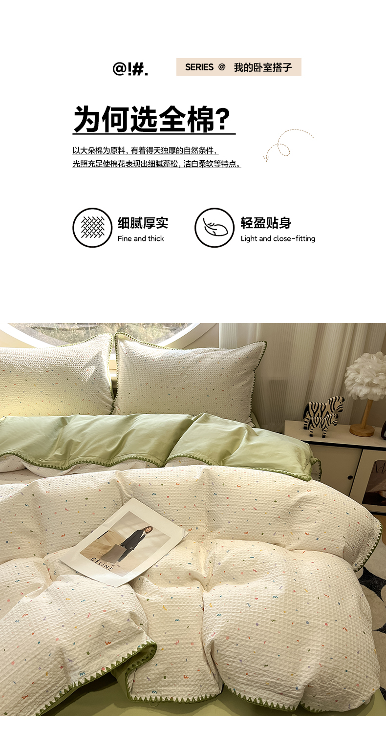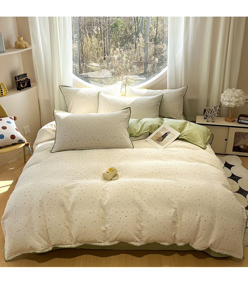 当前位置: 91家纺网 > 商品网购 > 床品套件 > 四件套 > 全棉普通四件套 > 如一 2026春夏新款全棉纯棉华夫格印花三角针工艺四件套 盛夏-绿