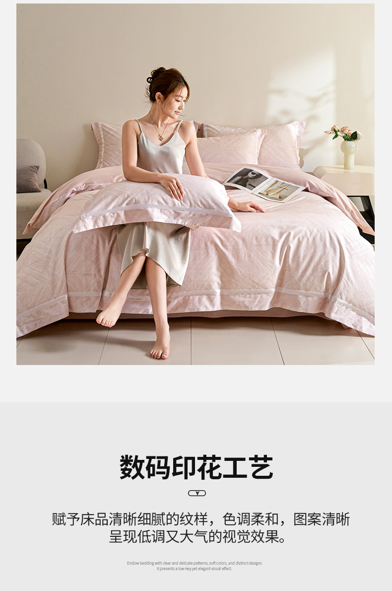 新方向 【控价 提供买家秀】2026新款数码印花50s双股全棉贡缎长绒棉四件套-星河(控价 标准328元 加大348元) 星河-蔷薇粉