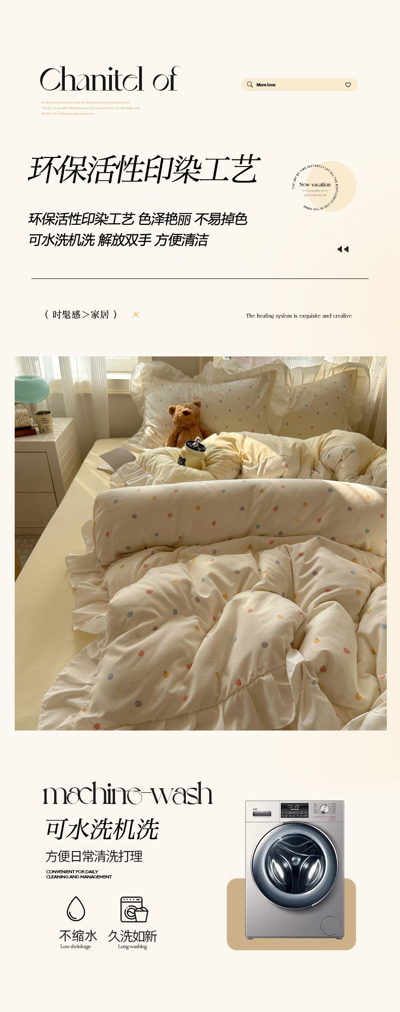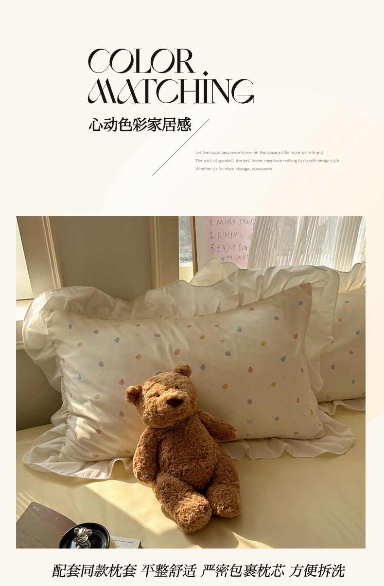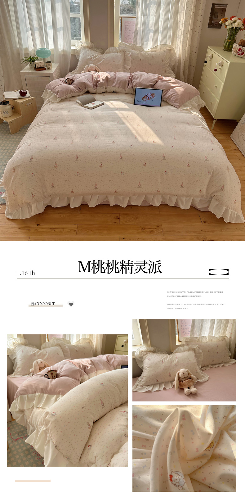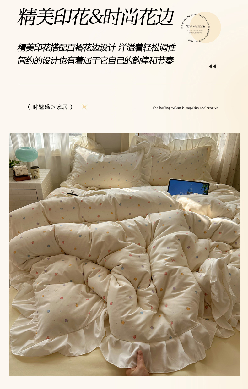 当前位置: 91家纺网 > 商品网购 > 床品套件 > 四件套 > 水洗棉四件套 > 沐慕 2026新款加厚款水洗棉云朵棉花边款四件套 M奶油小草莓