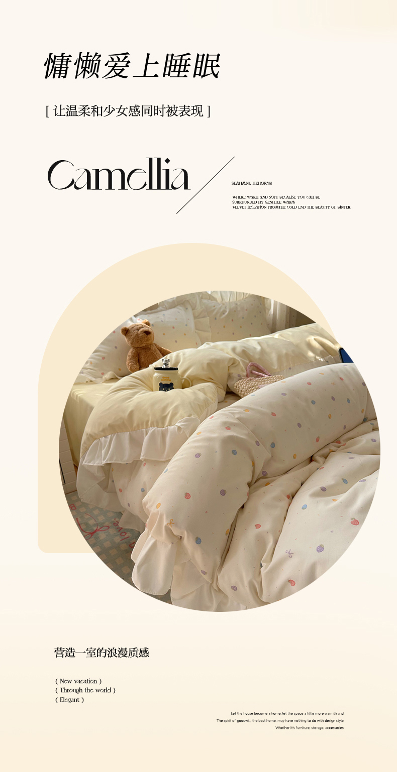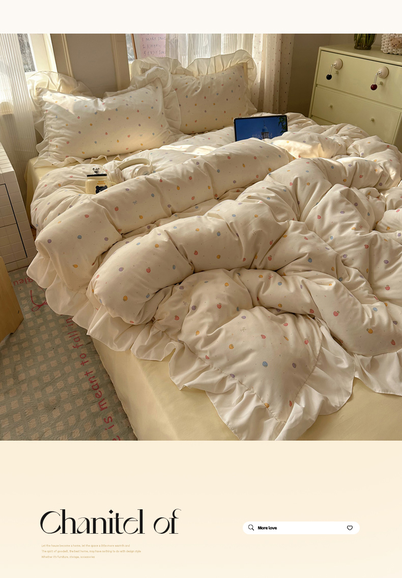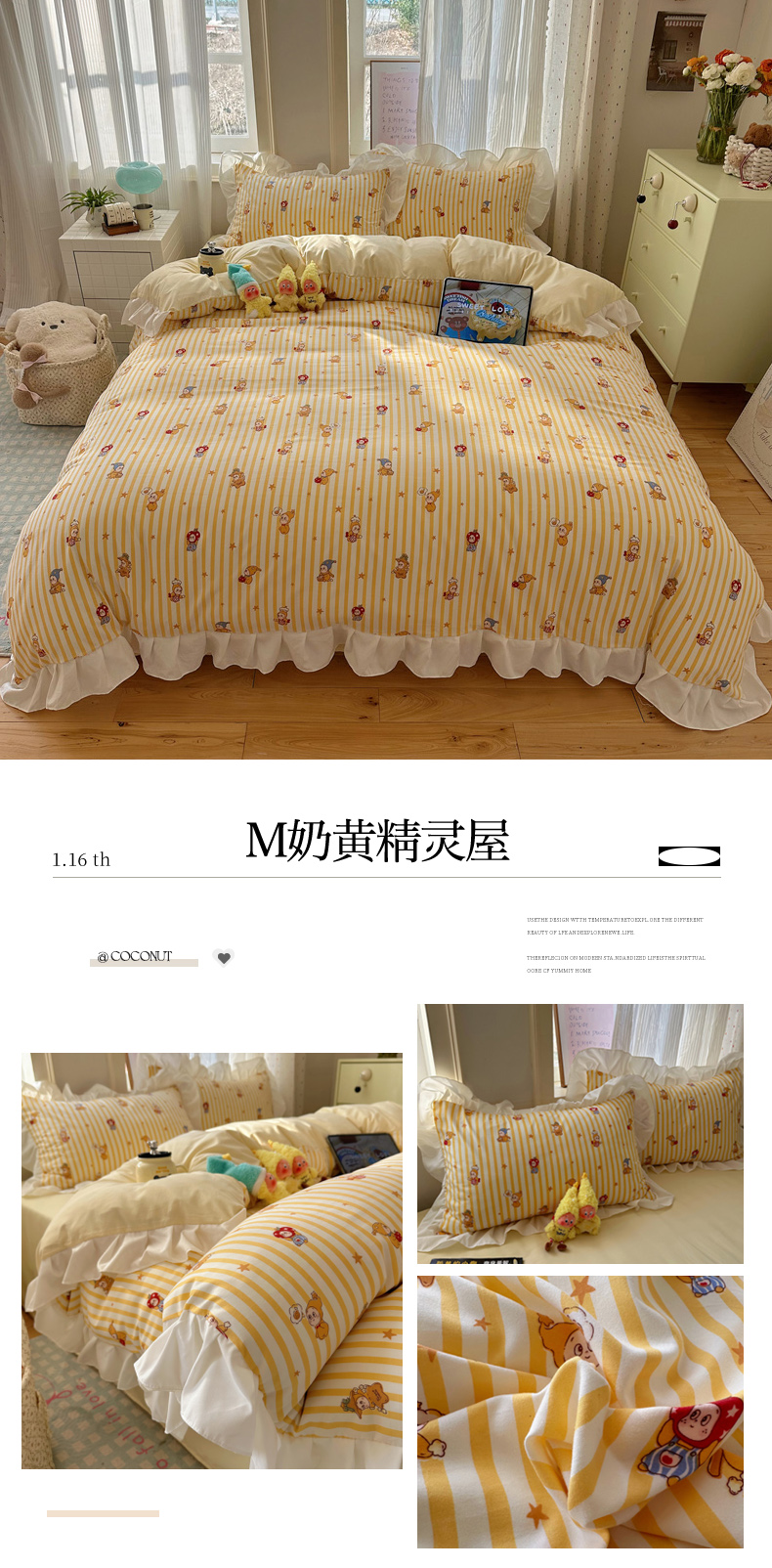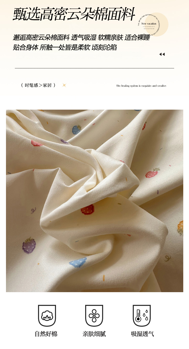 当前位置: 91家纺网 > 商品网购 > 床品套件 > 四件套 > 水洗棉四件套 > 沐慕 2026新款加厚款水洗棉云朵棉花边款四件套 M奶油小草莓