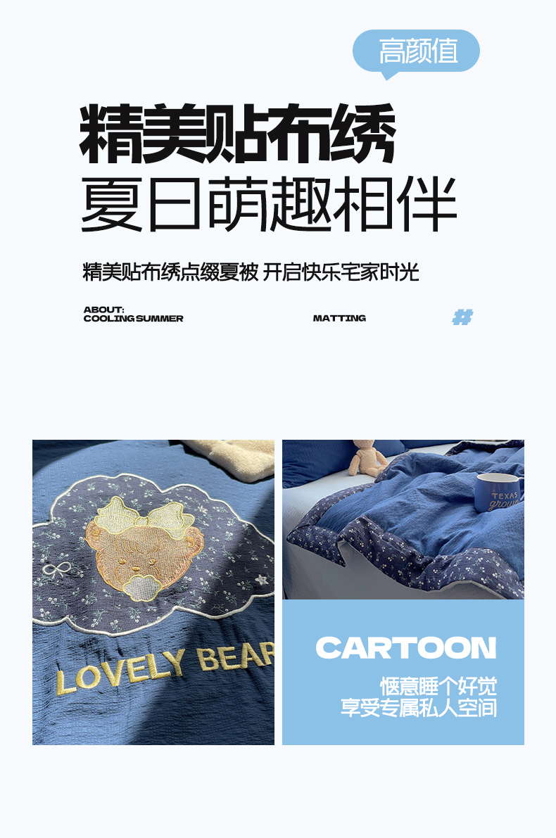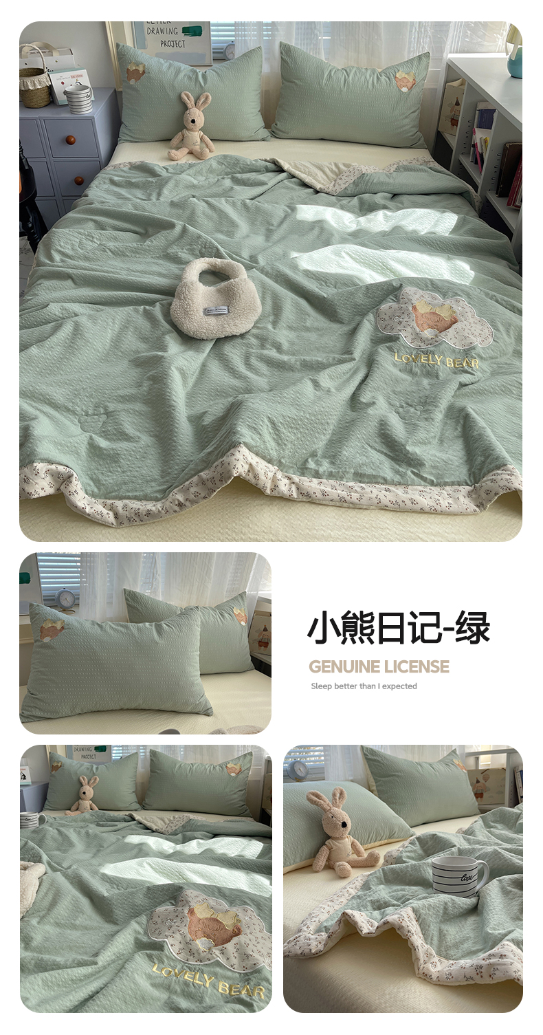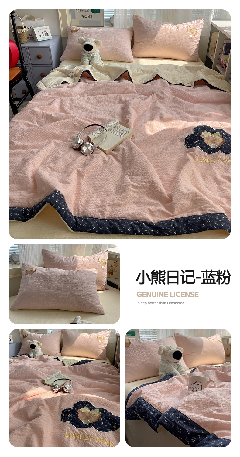 (总)贝扬思家纺 2026新款泡芙纱夏被夏凉被空调被贴布绣套件@小熊日记系列(可爱到犯规的夏被噜),小熊日记-藏青,小熊日记-黄粉,小熊日记-咖,小熊日记-蓝粉,小熊日记-绿,小熊日记-紫
