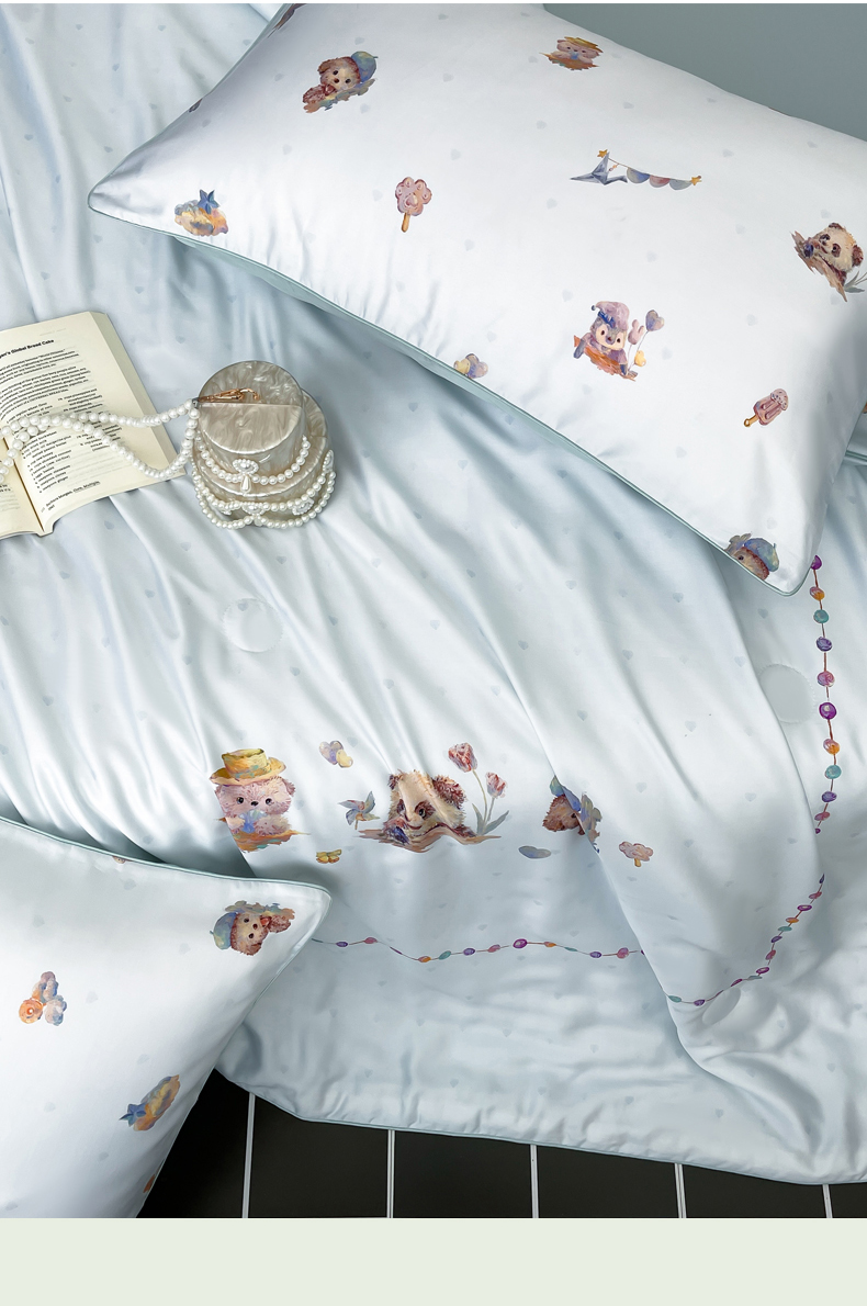 • 91家纺网 家纺一手货源 找家纺 (总)慕晨 2026新款天丝莱赛尔数码印加绣花高级简奢丝滑丝绸卡通款夏被四件套,球仔,彩蝶,甜猫,星兔,永恒