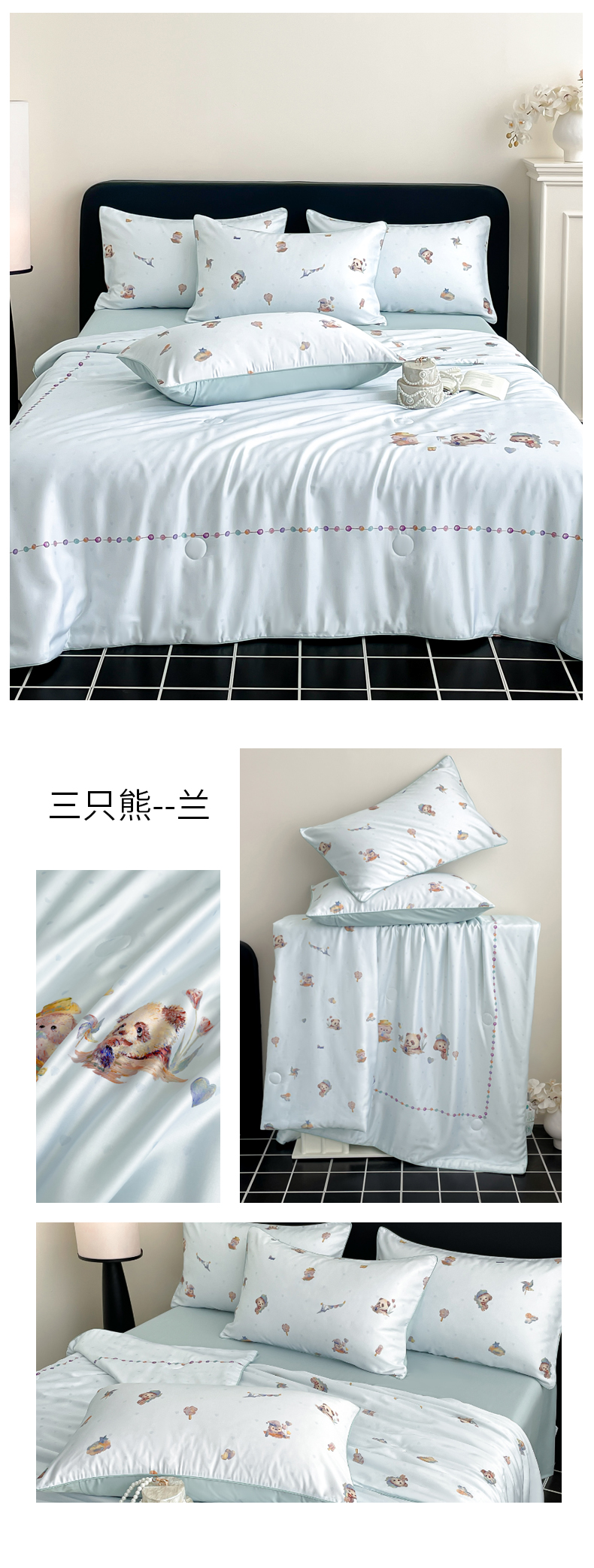 当前位置: 91家纺网 > 商品网购 > 被子 > 夏被 > 慕晨 2026新款莱赛尔数码印高级简奢卡通大版印花丝滑夏被四件套 三只熊--米白