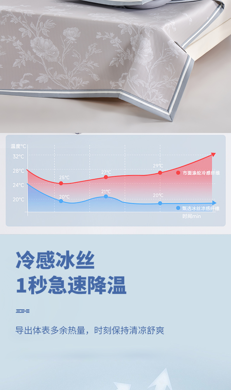 (总)小牛席业 2026新款铃兰冷感冰丝席凉席席子,铃兰-粉色,铃兰-灰色,铃兰-蓝色,铃兰-香槟