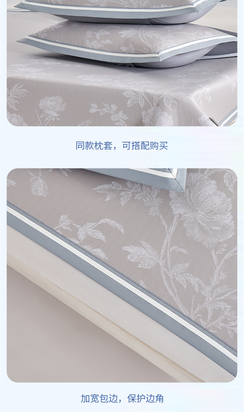 (总)小牛席业 2026新款铃兰冷感冰丝席凉席席子床笠款,铃兰-粉色,铃兰-灰色,铃兰-蓝色,铃兰-香槟