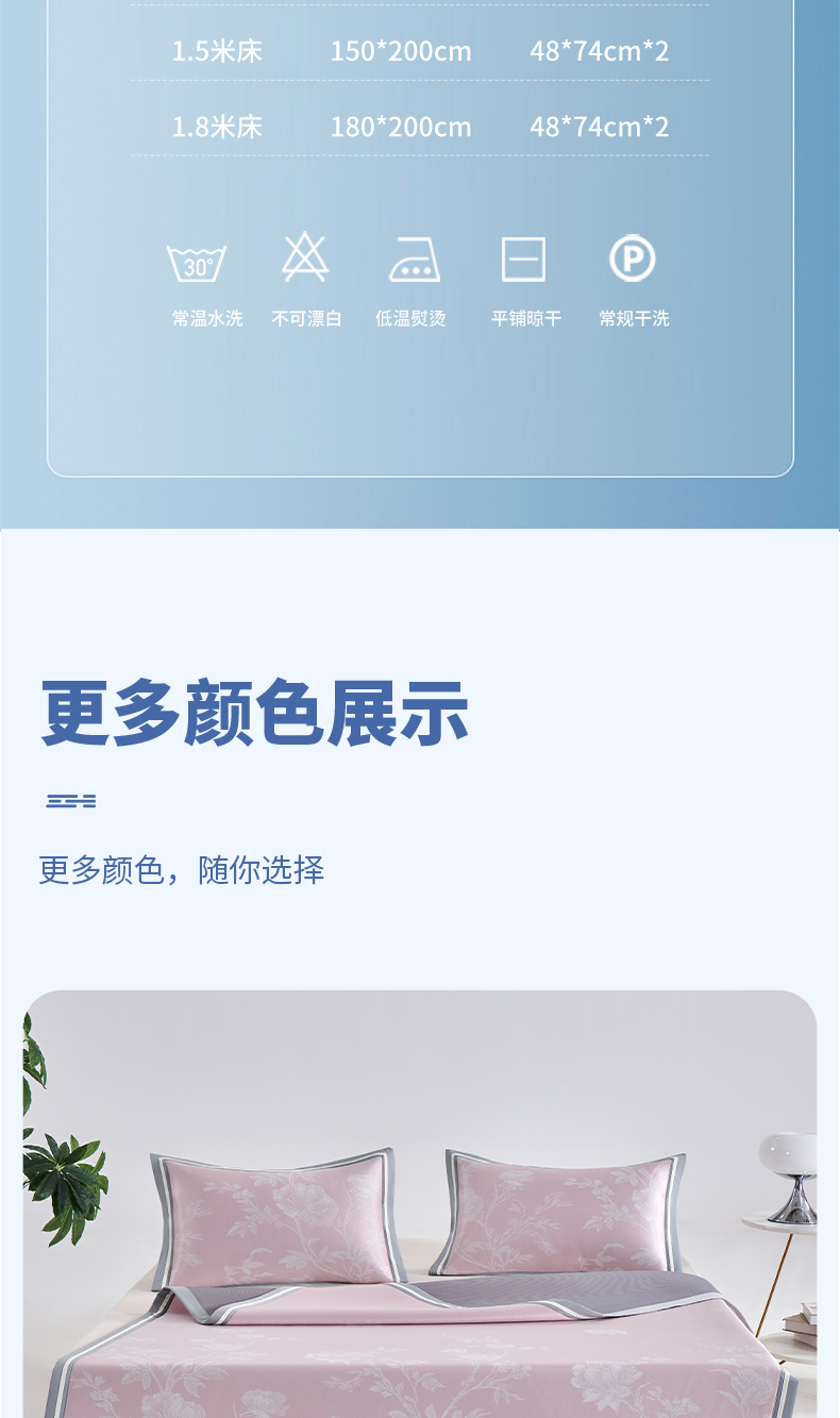 (总)2023新款超精密冰丝席-小斜纹系列-床笠款藤席凉席竹席,粉色,蓝色,绿色,银灰