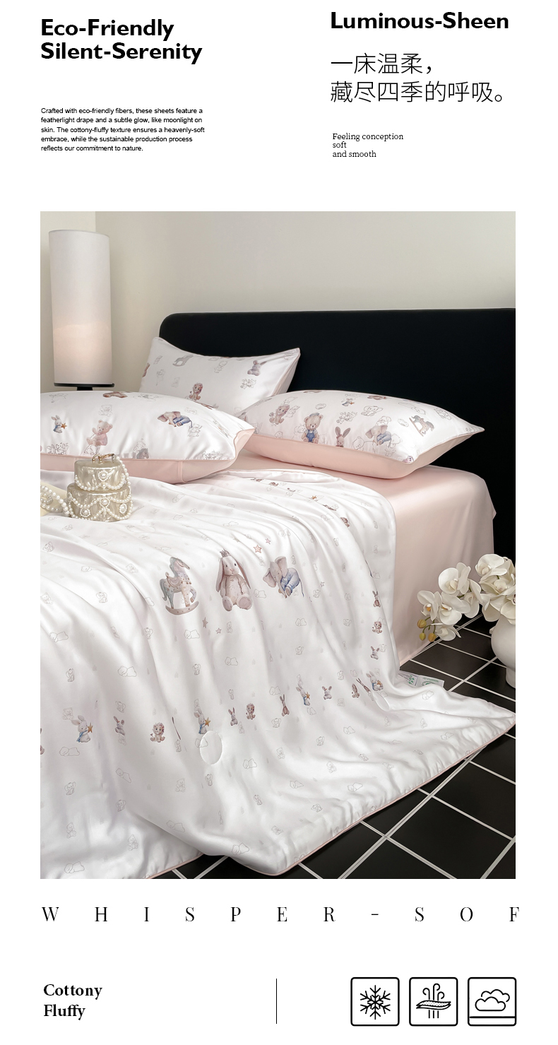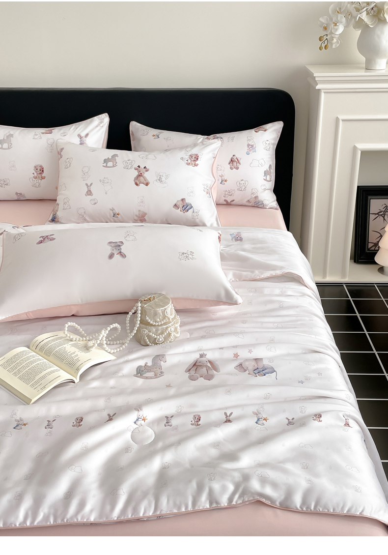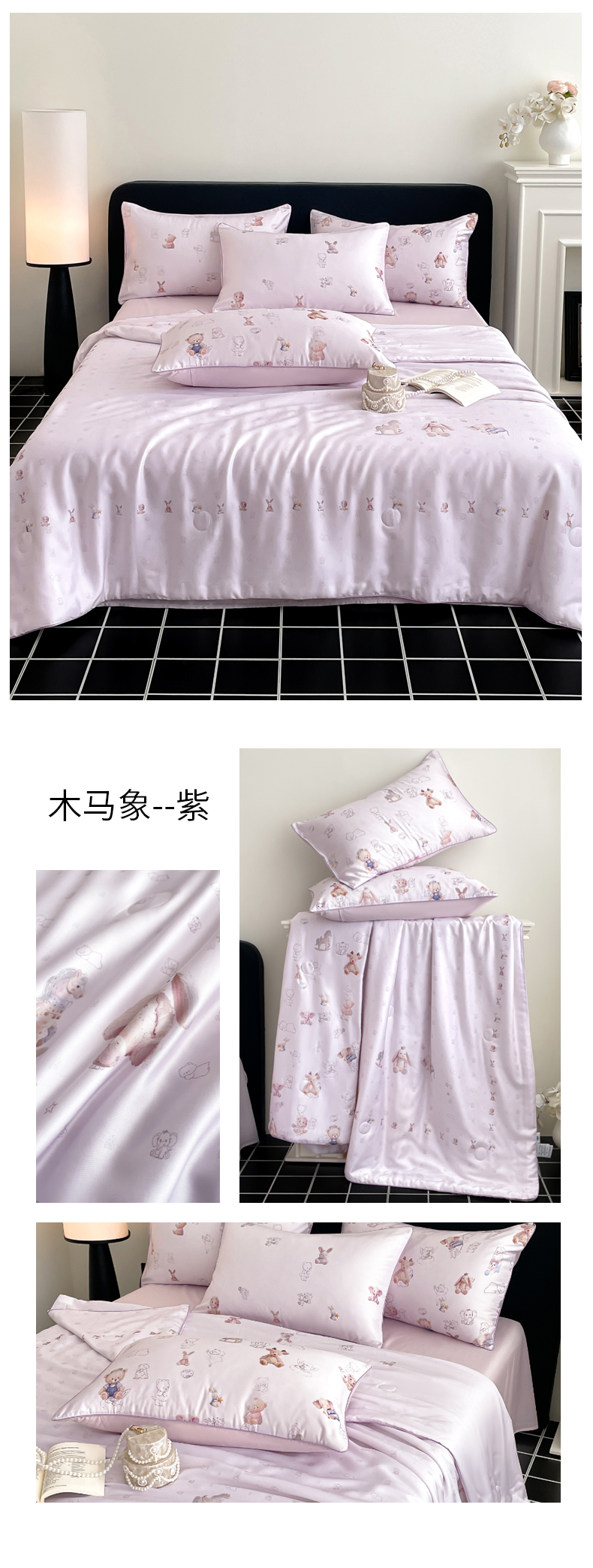 (总)慕晨 2026新款莱赛尔数码印高级简奢卡通大版印花丝滑夏被四件套,三只熊--兰,斑马--米白,蝶舞,木马象--米白,木马象--紫,三只熊--米白