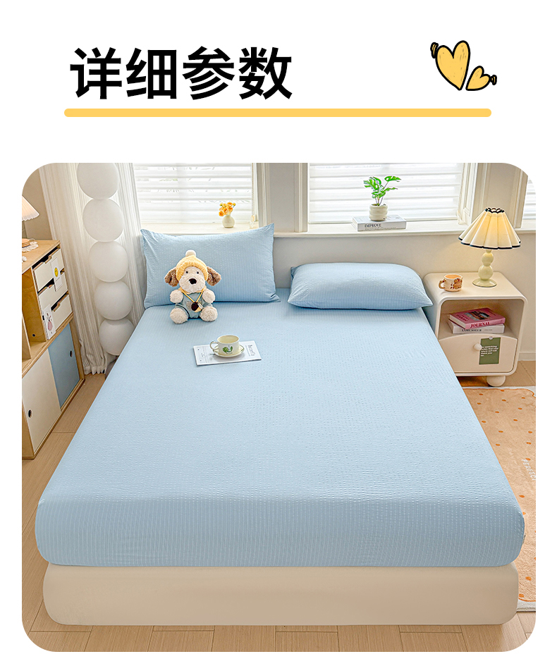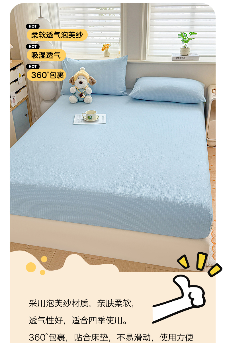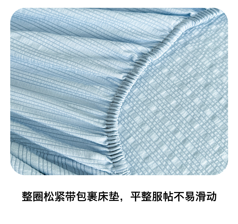 • 91家纺网 家纺一手货源 找家纺 女子家纺 2026新款亲肤泡芙纱印花床笠单床笠床笠单件 冰川蓝