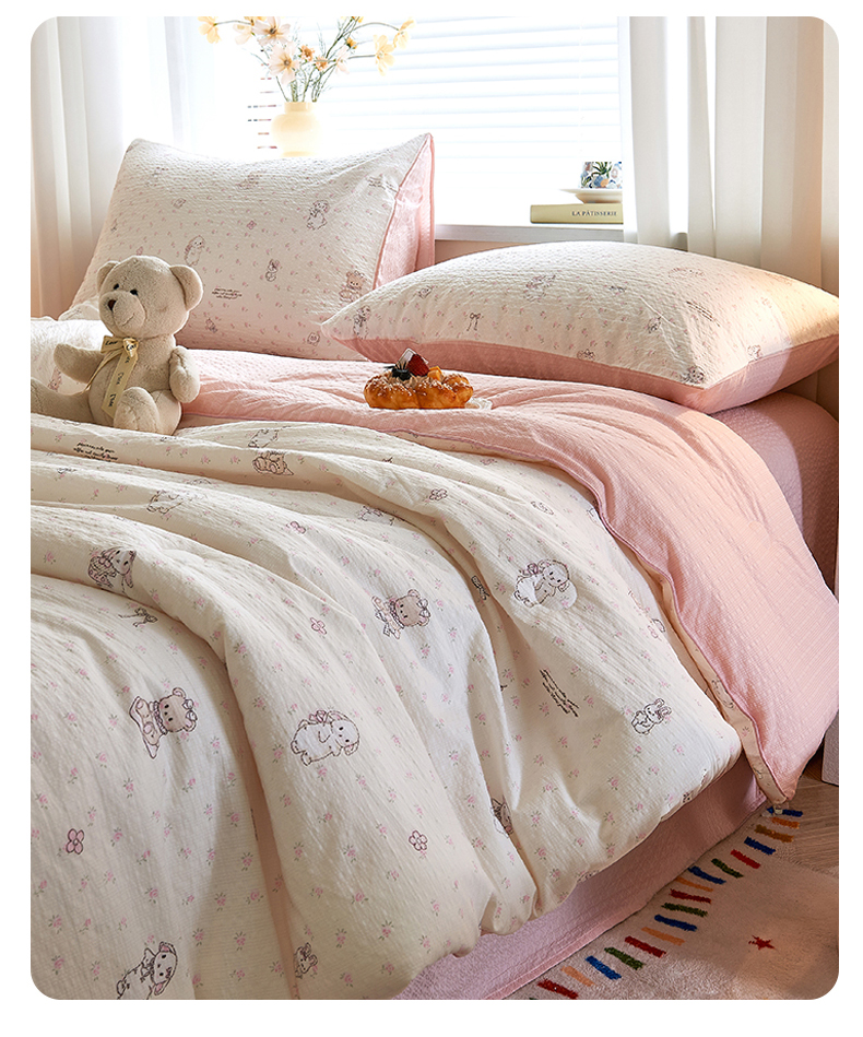 (总)铺尚美家纺 2026新款A类古法水洗仿棉云感纱四件套,萌兔小熊,安娜,波点熊,布丁狗,草莓啵啵,草莓熊-粉,草莓熊-蓝,丁香紫,格纹萌友团,格子熊,狗狗乐园,乖乖狗-灰,乖乖狗-玉,花园小猫,猫狗狂欢夜,玫瑰庄园,莫兰迪,奶绿牛油果,蔷薇花语,条纹小熊,小马星河,小奶团,星芒啵啵熊,雪花世界,英伦小木马,紫罗兰