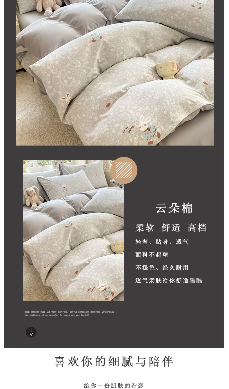 当前位置: 91家纺网 > 商品网购 > 床品套件 > 四件套 > 其它四件套 > 诗黛尔 2026新款学生季仙女小花卉植物卡通云朵棉四件套三件套(二) 沁园-灰