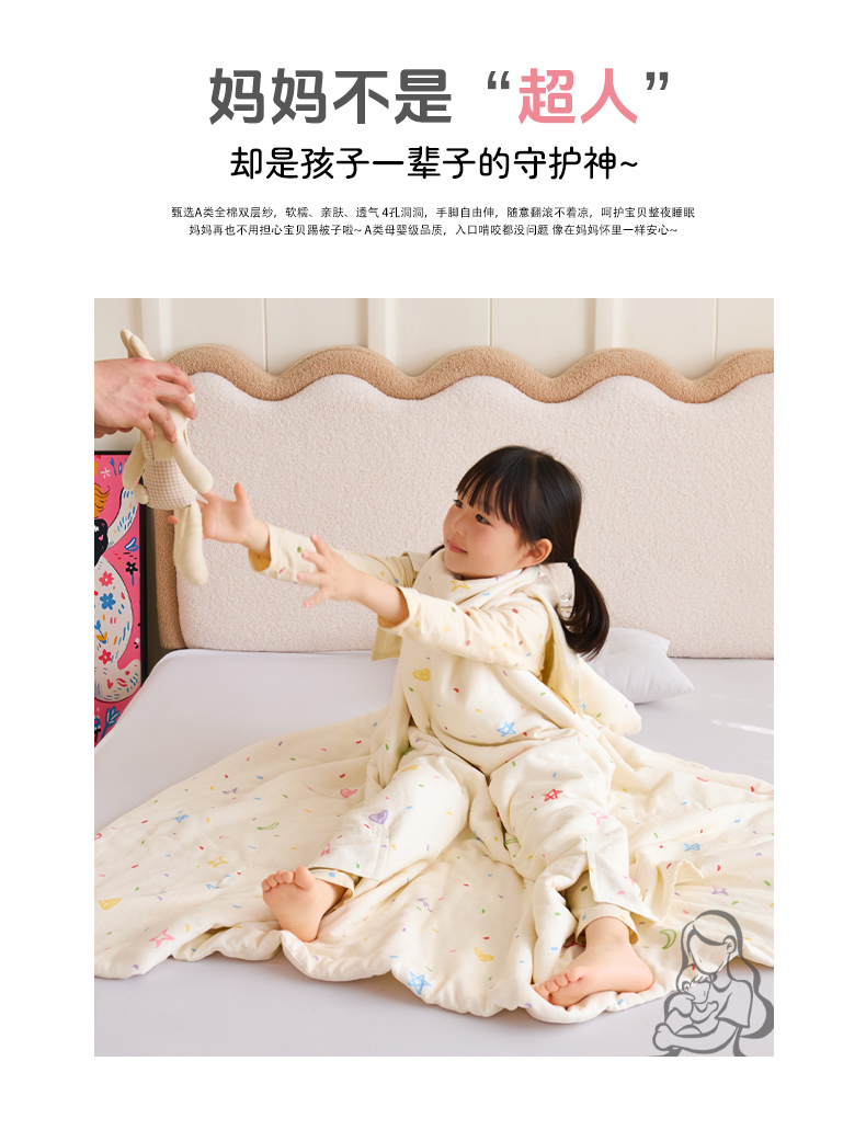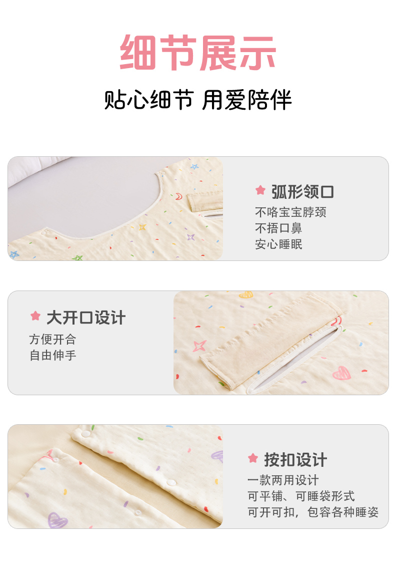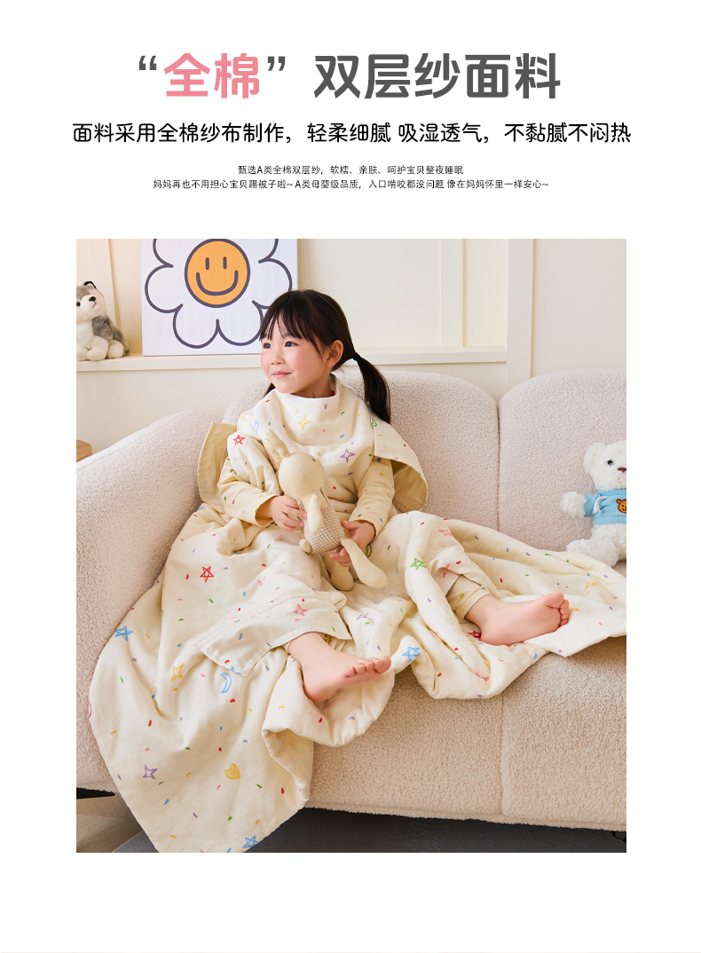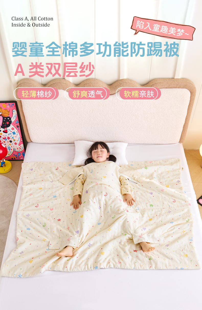 当前位置: 91家纺网 > 商品网购 > 婴童用品 > 婴童睡袋/防踢被 > 拾小柒 2026新款全棉双层纱多功能防踢被 星月童话
