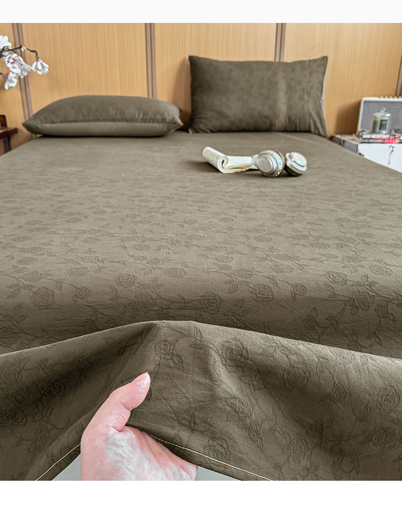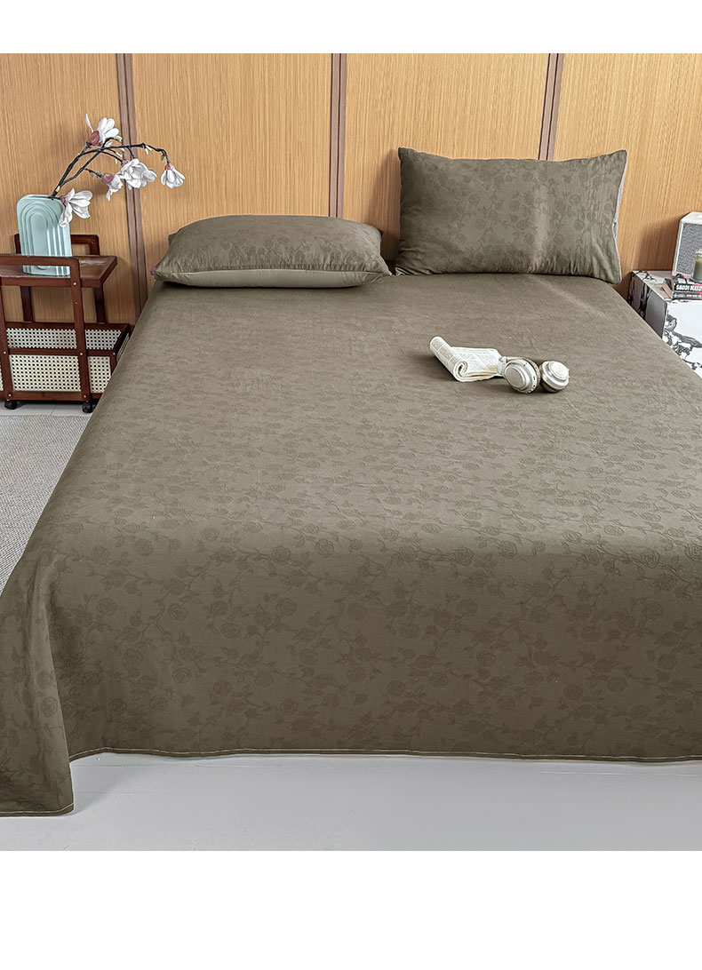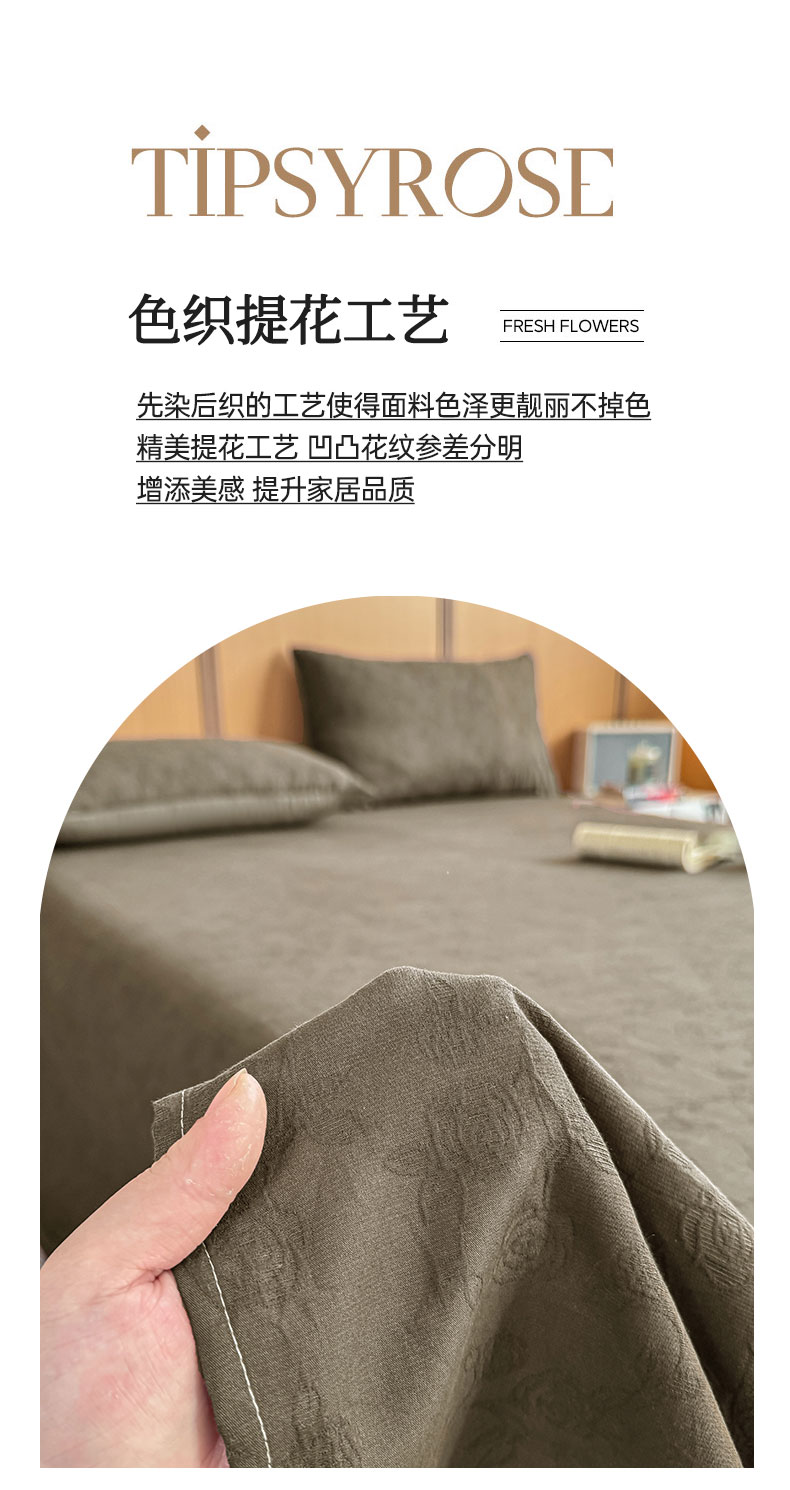 • 91家纺网 家纺一手货源 找家纺 灰鲸 2026新款全棉简约三层纱色织提花单品床单 蔷薇-摩卡
