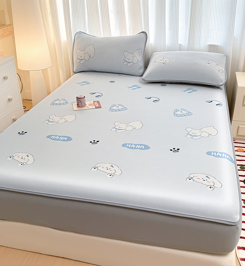 (总)布柔 2026新款冰皮凉席床笠冰丝小清新卡通印花软席可机洗,哈哈狗,初夏,哈基米,花语,蓝莓,礼物熊,铃兰兔,摩登时代,圣诞树,素叶,泰迪熊,条纹狗,晚安狗,小熊猫,绣球花,郁金香