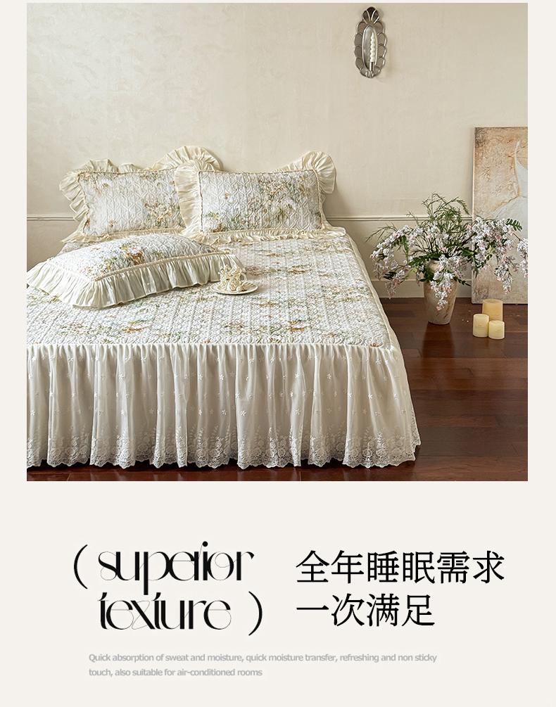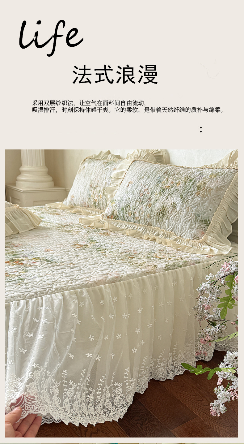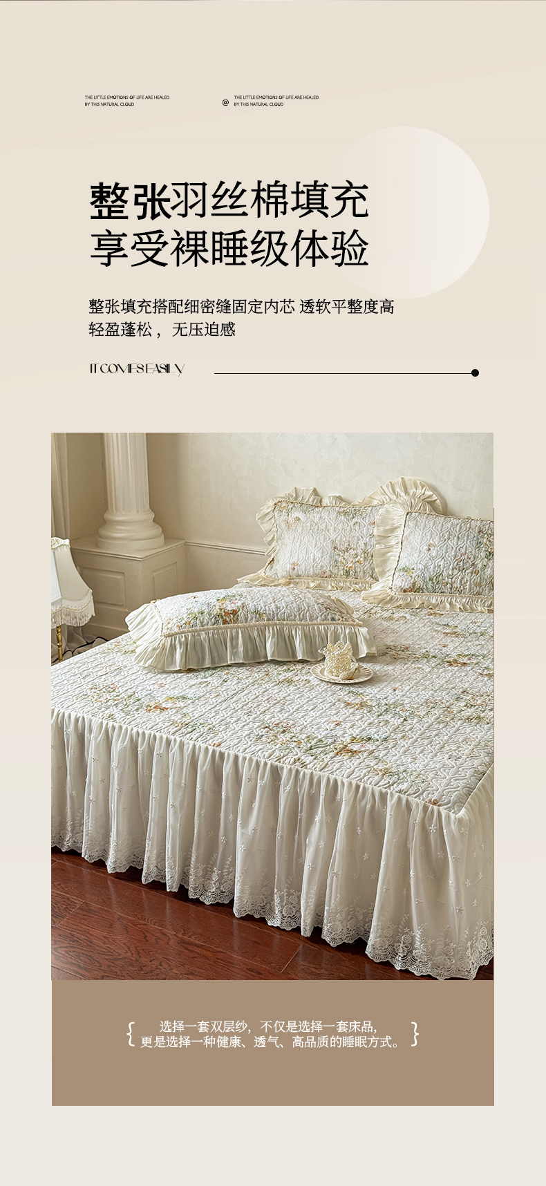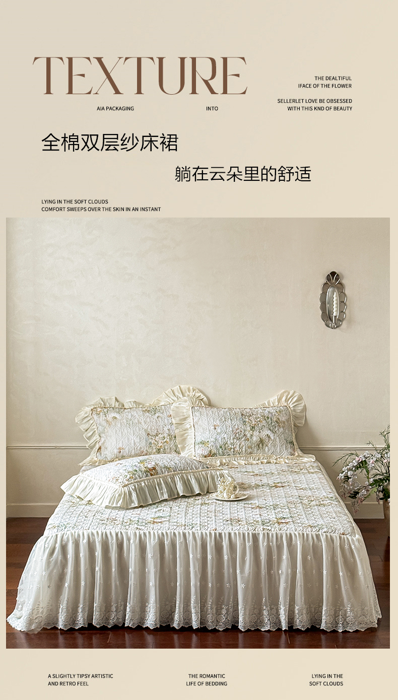 花香四季家纺 2026新款全棉双层纱床裙三件套 洛丽可