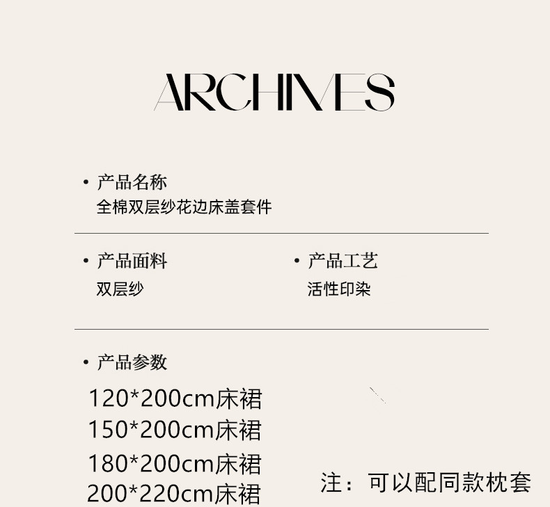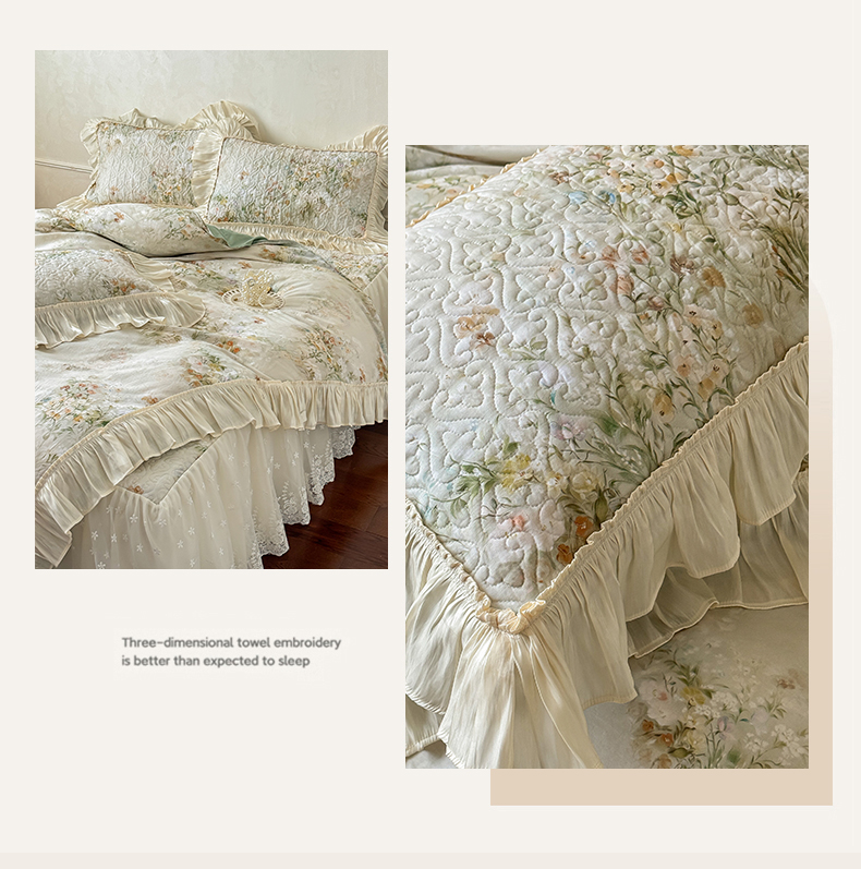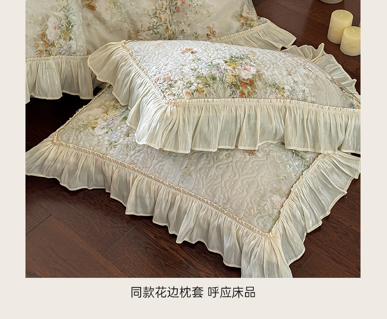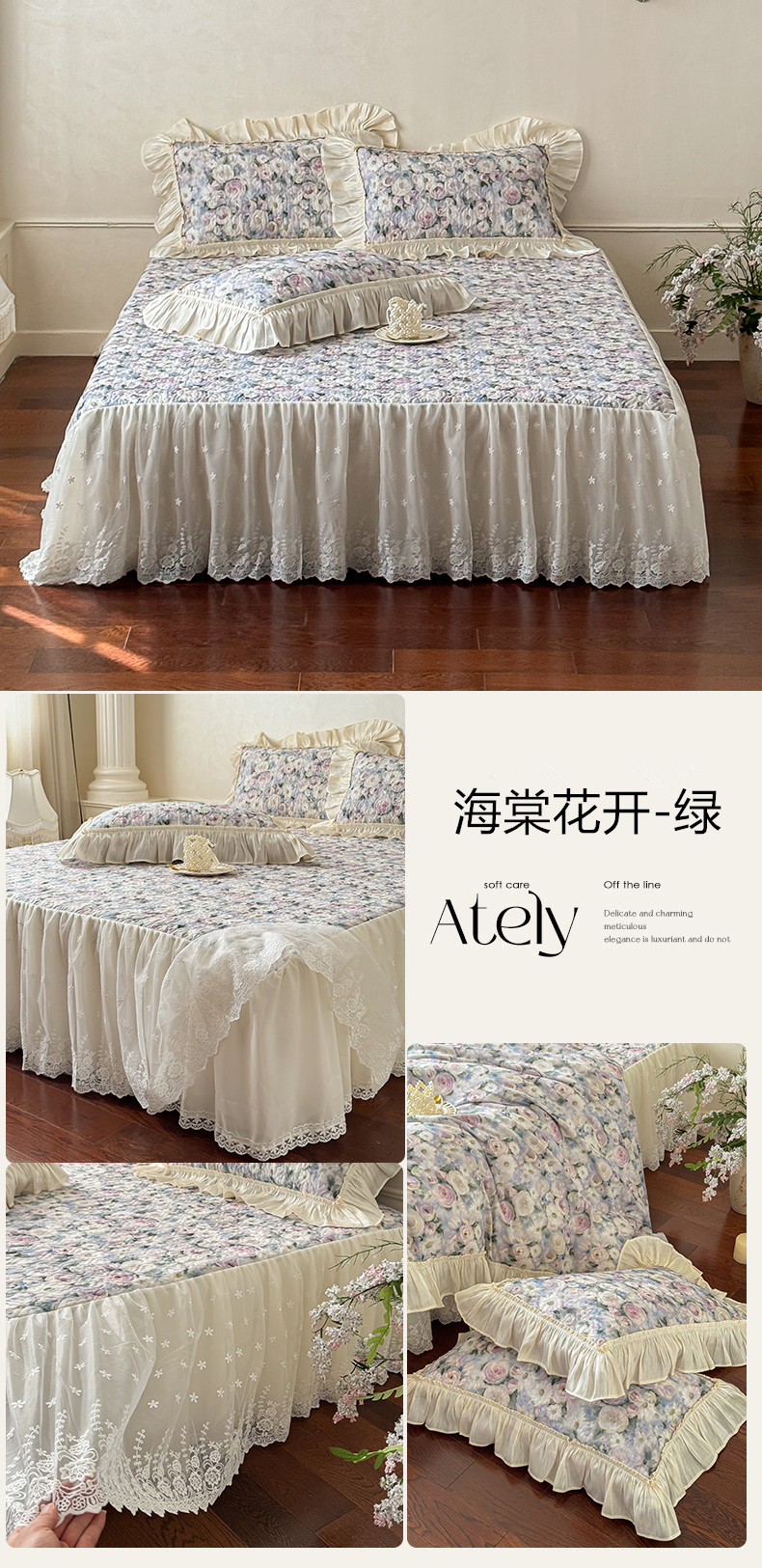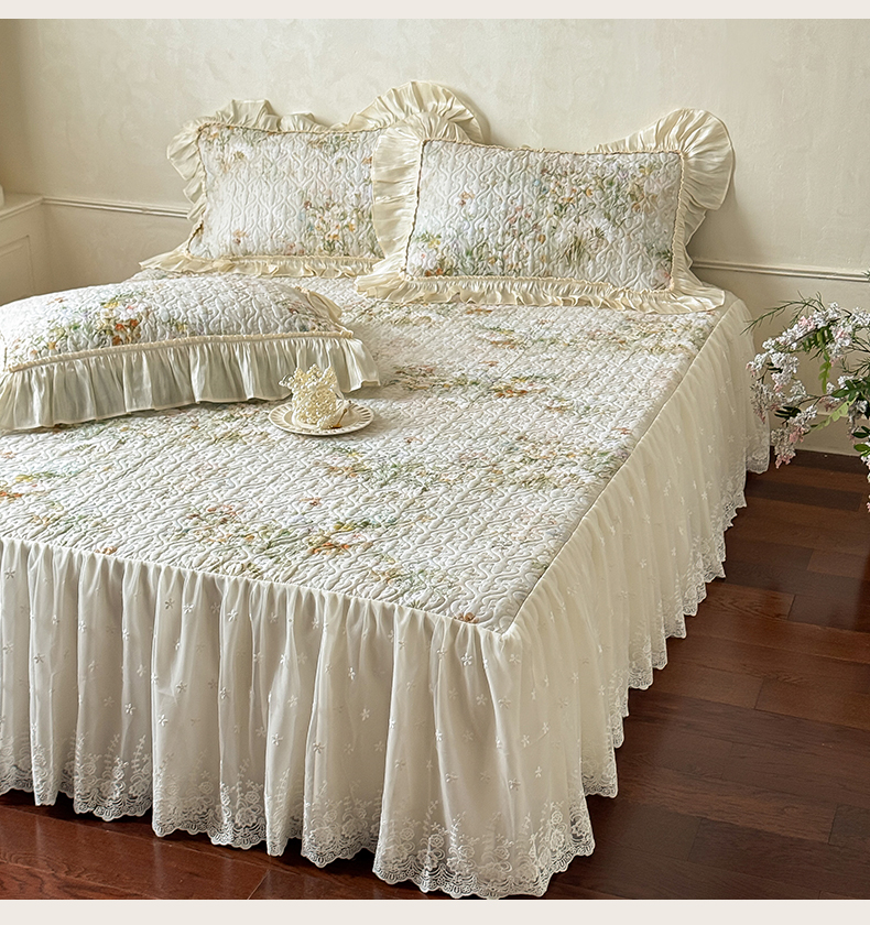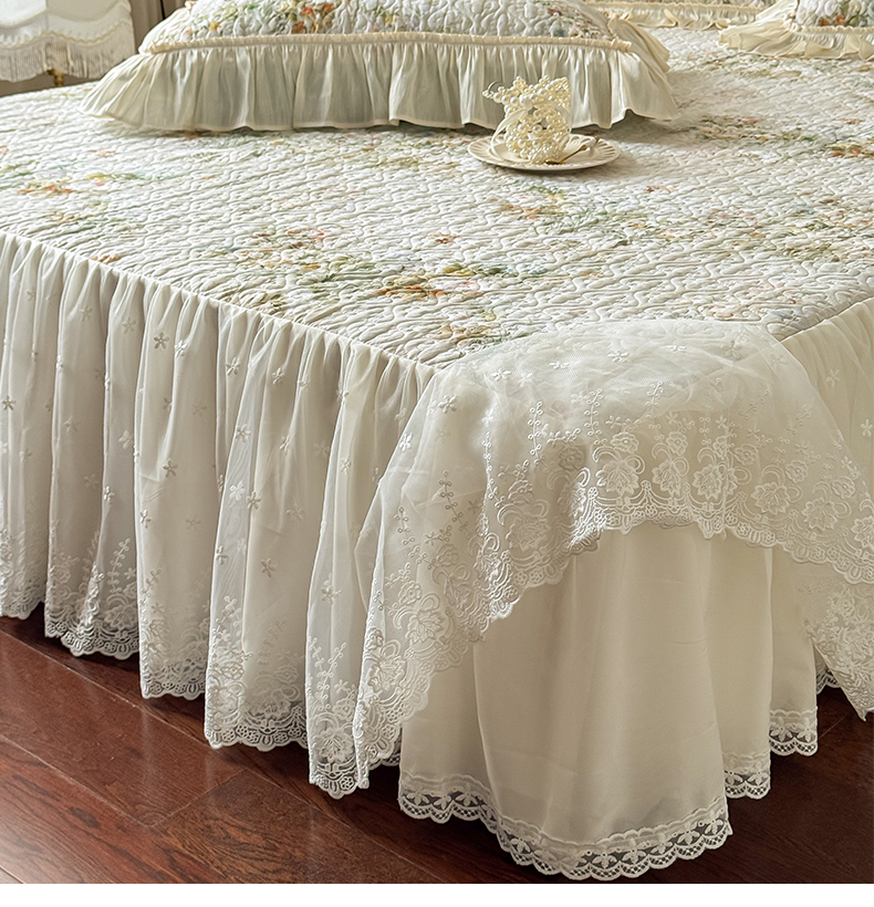 花香四季家纺 2026新款全棉双层纱床裙三件套 洛丽可