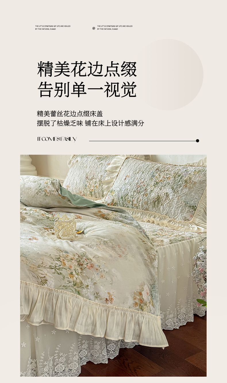 • 91家纺网 家纺一手货源 找家纺 花香四季家纺 2026新款全棉双层纱床裙三件套 洛丽可
