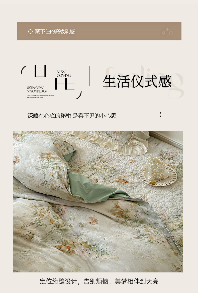 • 91家纺网 家纺一手货源 找家纺 (总)花香四季家纺 2026新款亲肤天丝棉四件套,罗宾咖,少女粉,奶油白