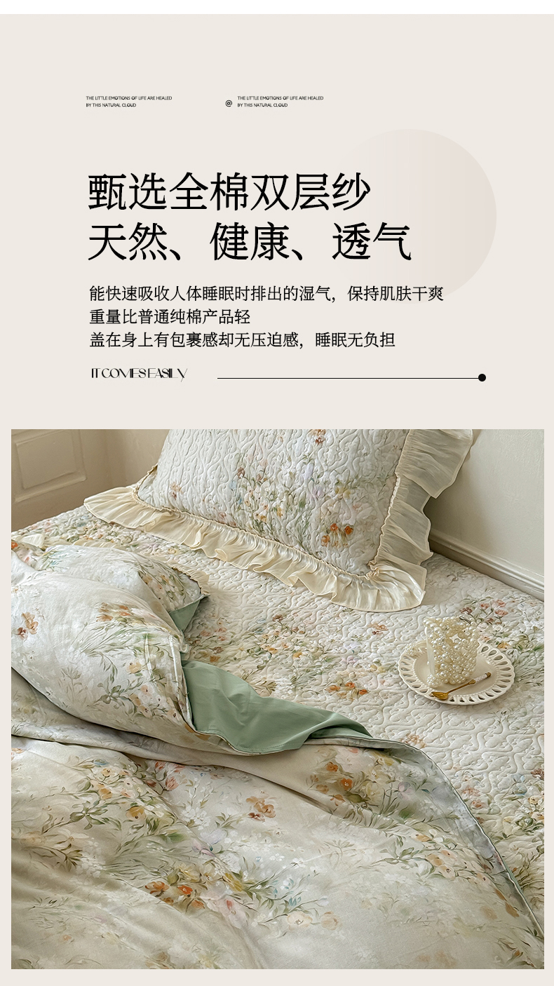 (总)花香四季家纺 2026新款全棉双层纱数码印花四件套,半夏,洛丽可,朝花夕拾,海棠花开-紫,海棠花开-绿