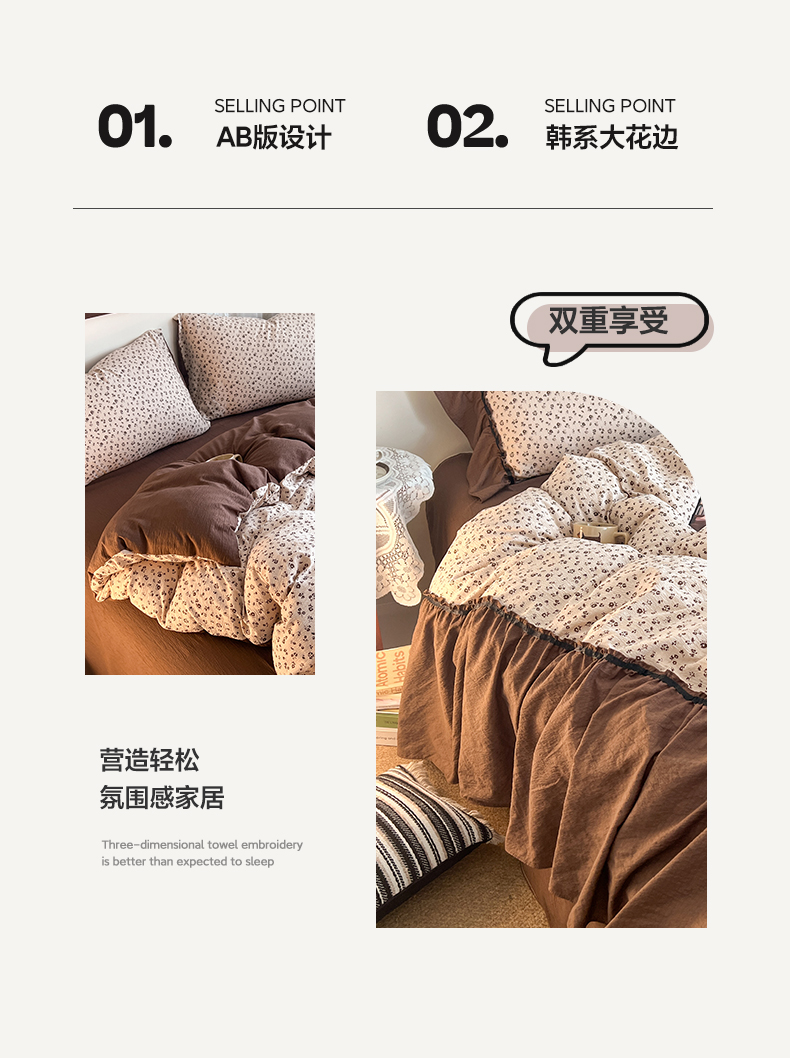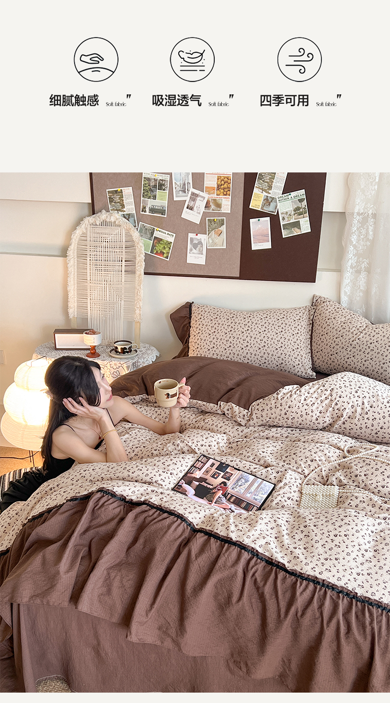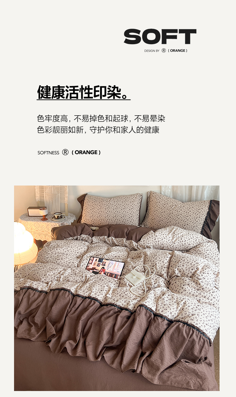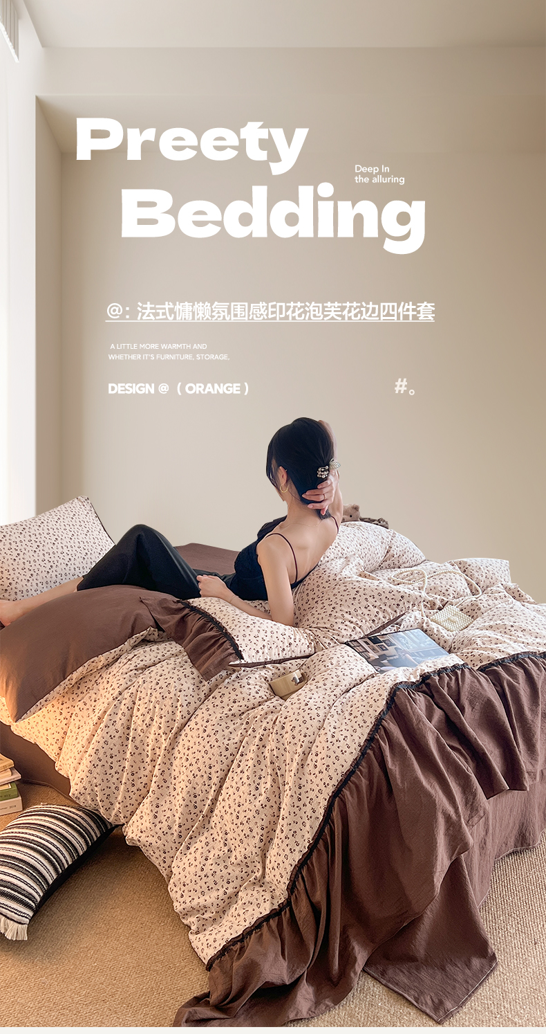商品名称:晨曦家纺 2026新款韩系法式慵懒氛围感印花泡芙花边四件套 可可花舞