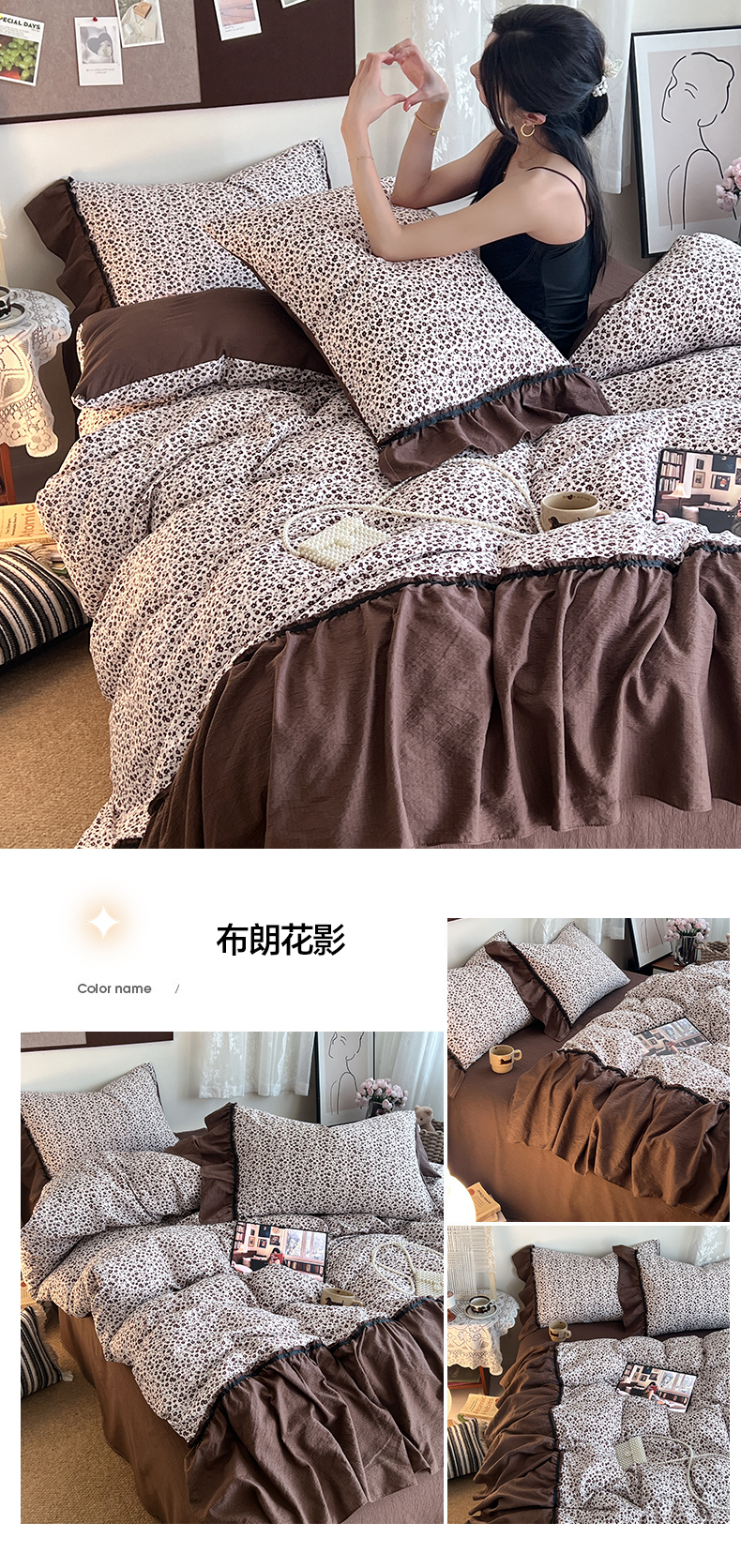 晨曦家纺 2026新款韩系法式慵懒氛围感印花泡芙花边四件套 可可花舞