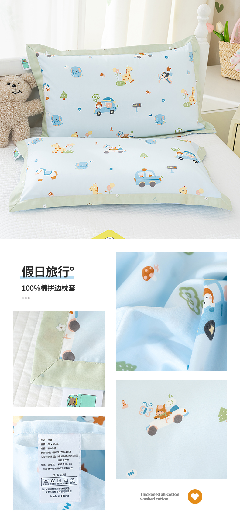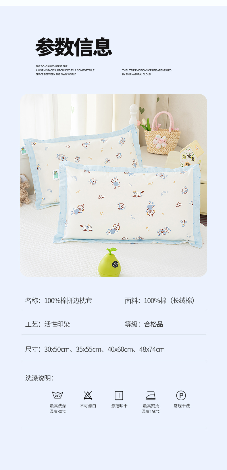 (总)良佐生活 2026年新款铂金全棉压线枕套,甜心熊,布布,调皮象,福宝,乐兔粉,乐兔蓝,太空探险,挖机小分队