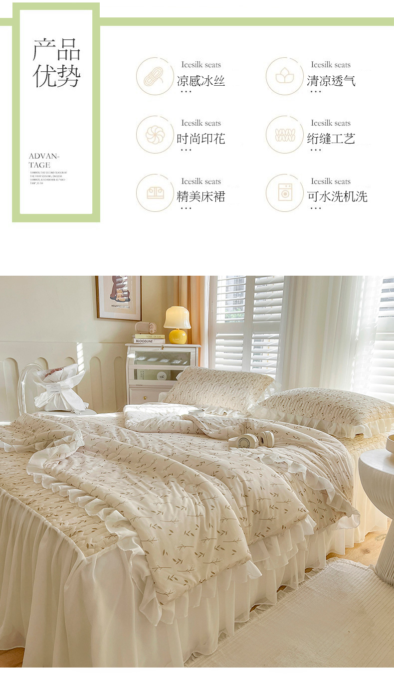 当前位置: 91家纺网 > 商品网购 > 床上用品 > 凉席 > 乳胶凉席 > 慕澄2026新款小清新印花凉感丝花床裙款乳胶凉席 叶子青青