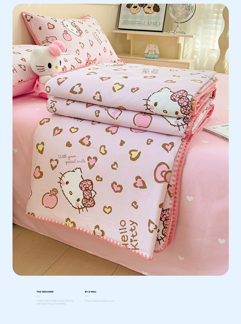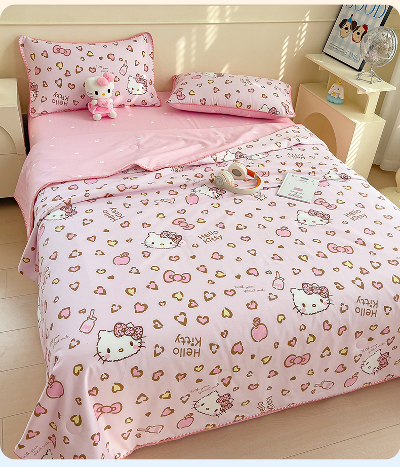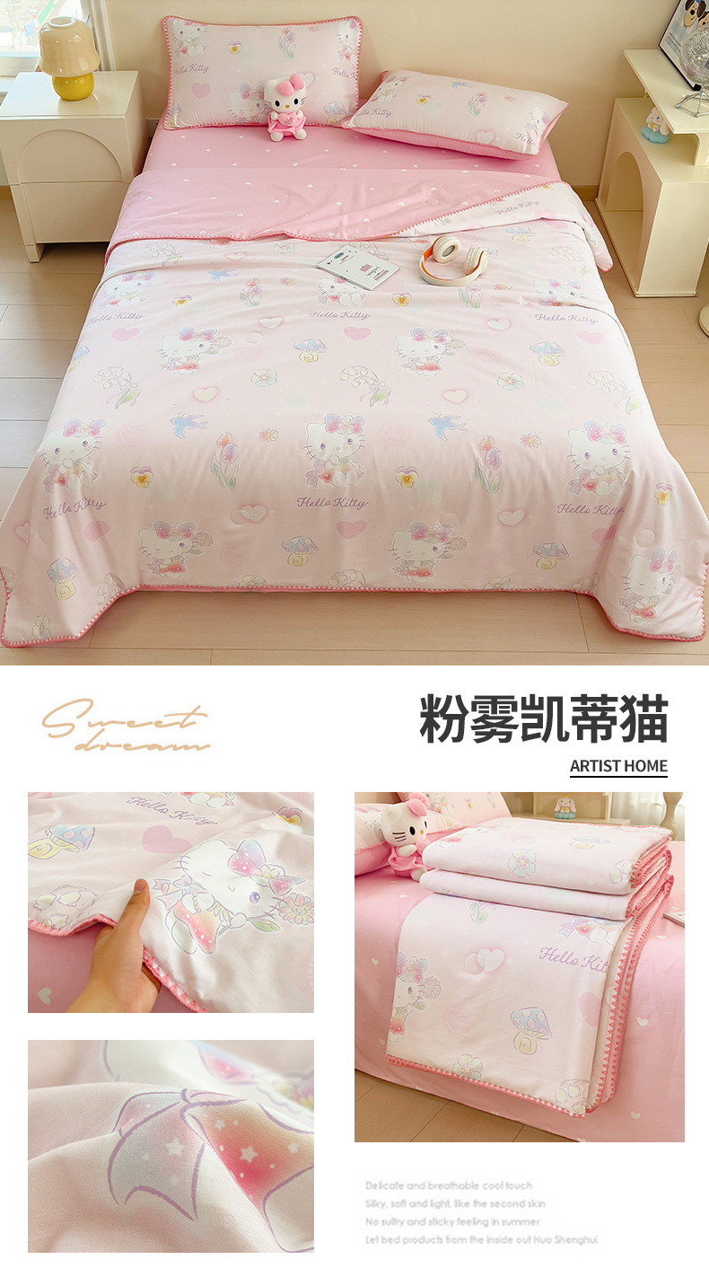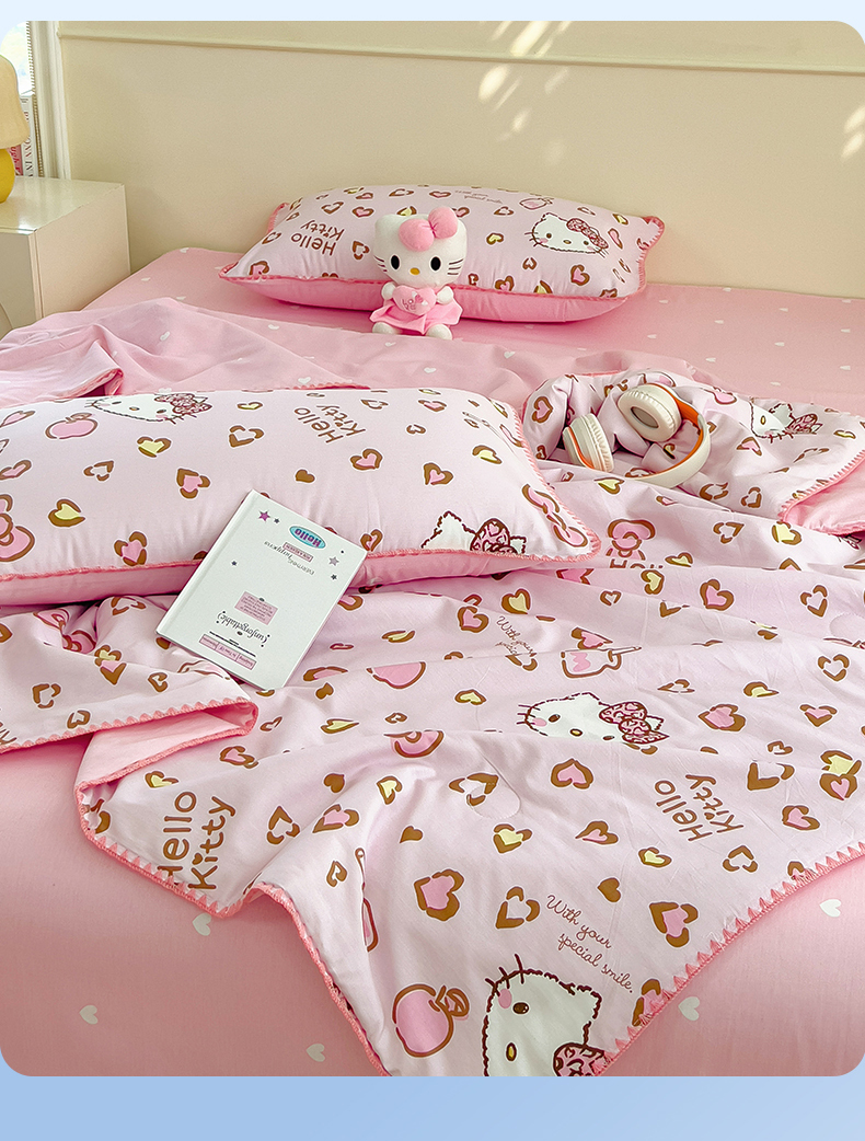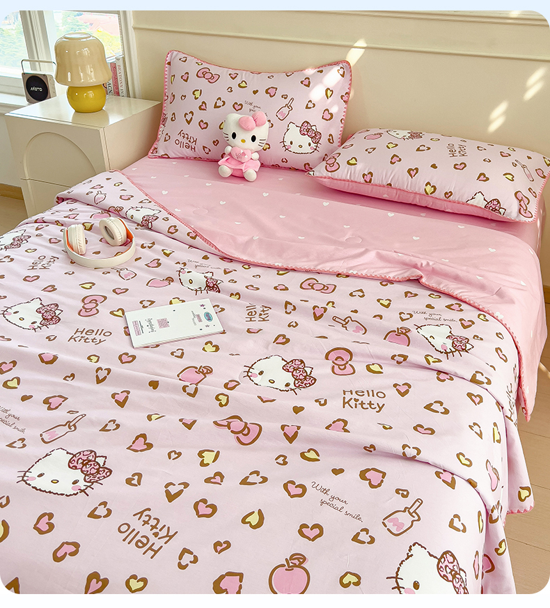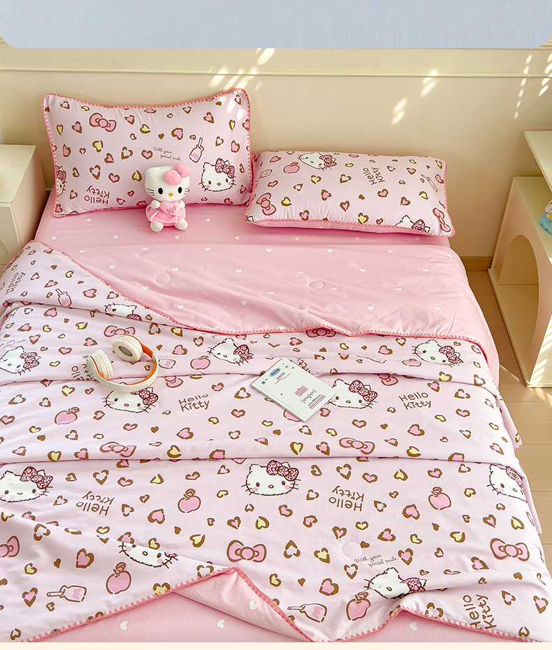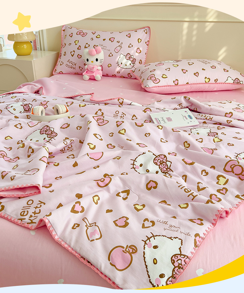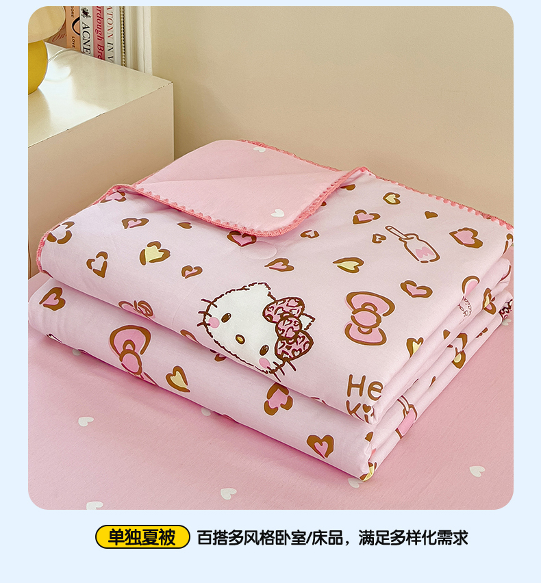 商品名称:兄弟坊 2026新款正版授权卡通全棉13370印花夏被夏凉被儿童被 夏被四件套 甜酷凯蒂猫