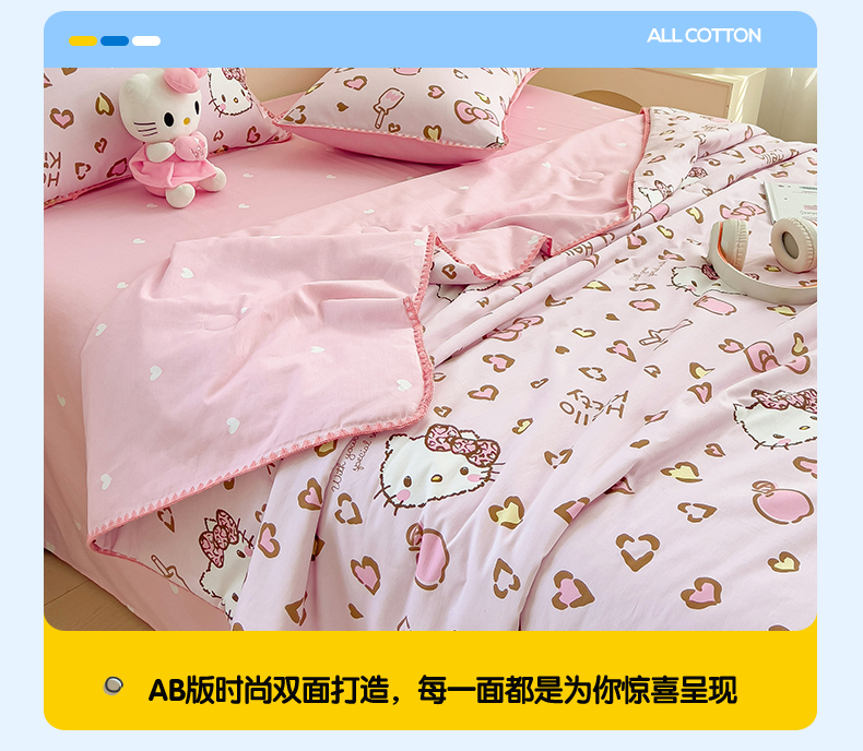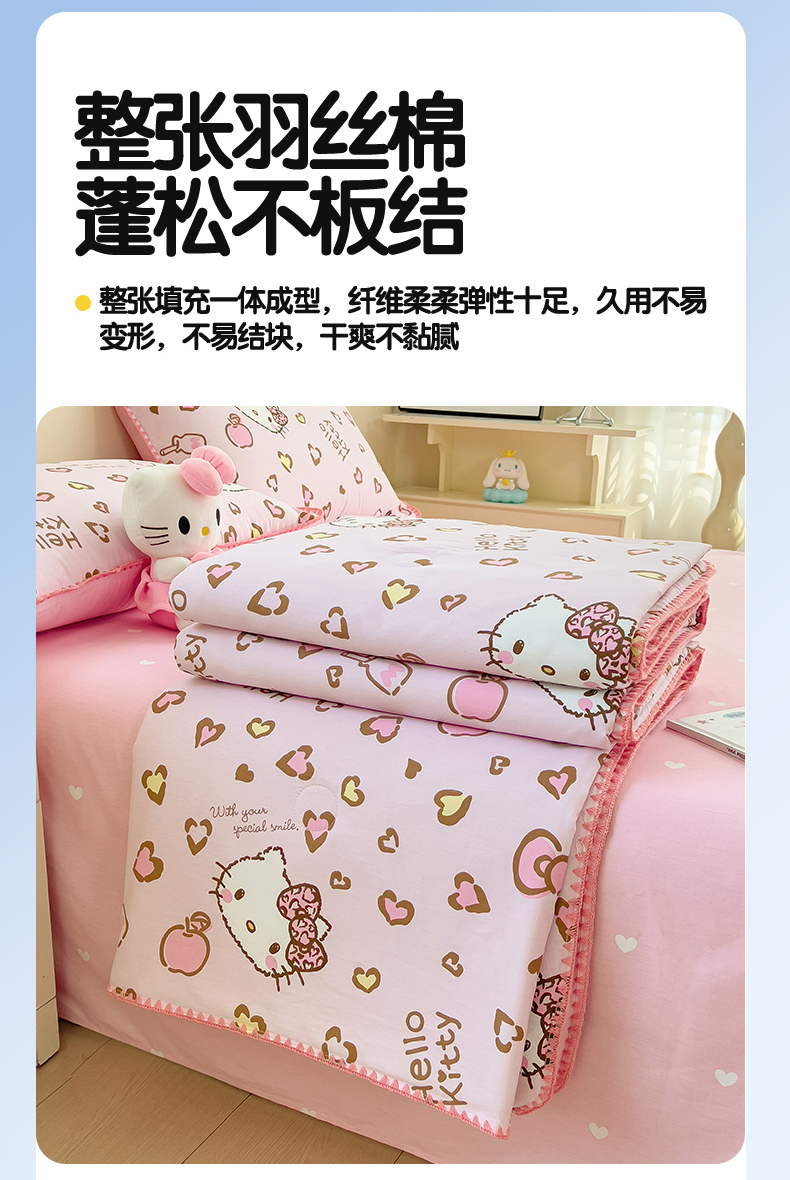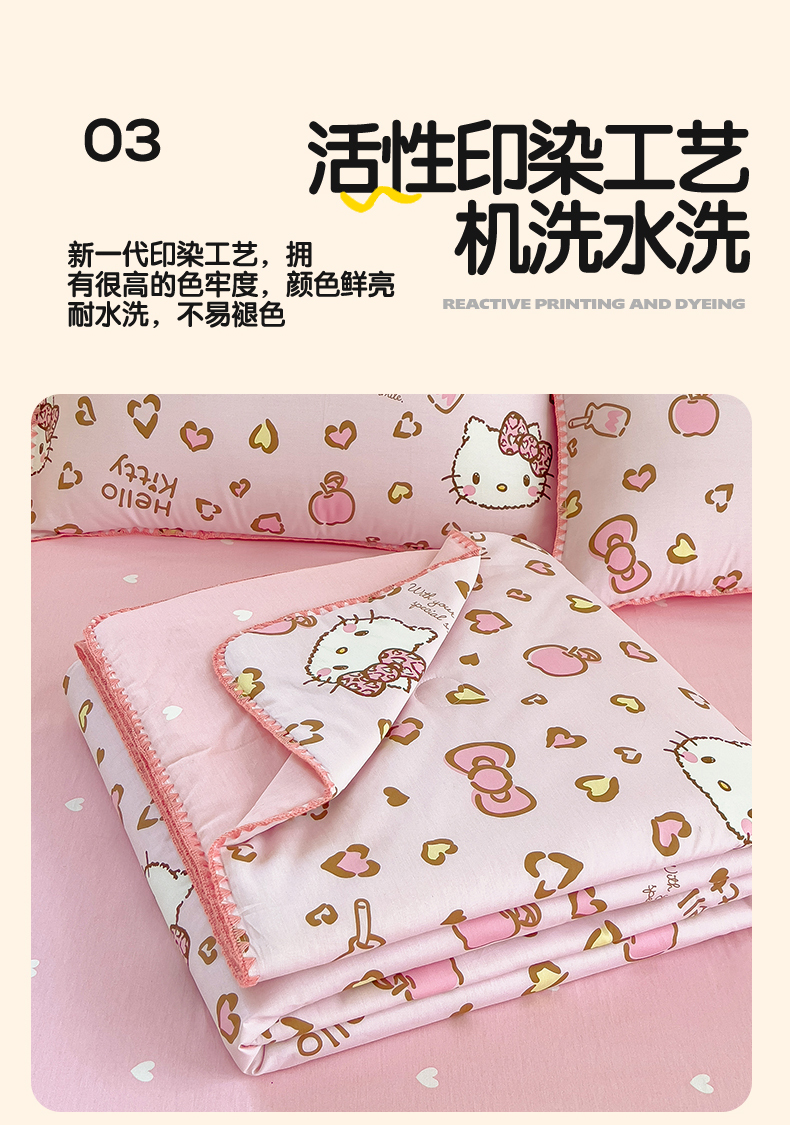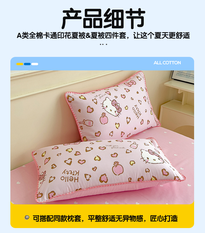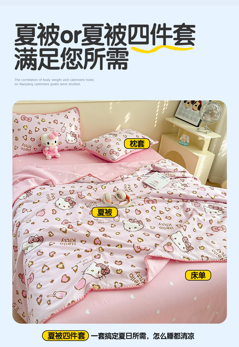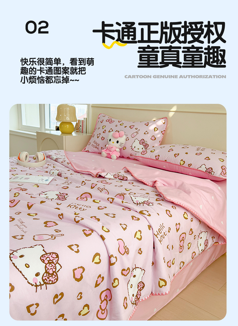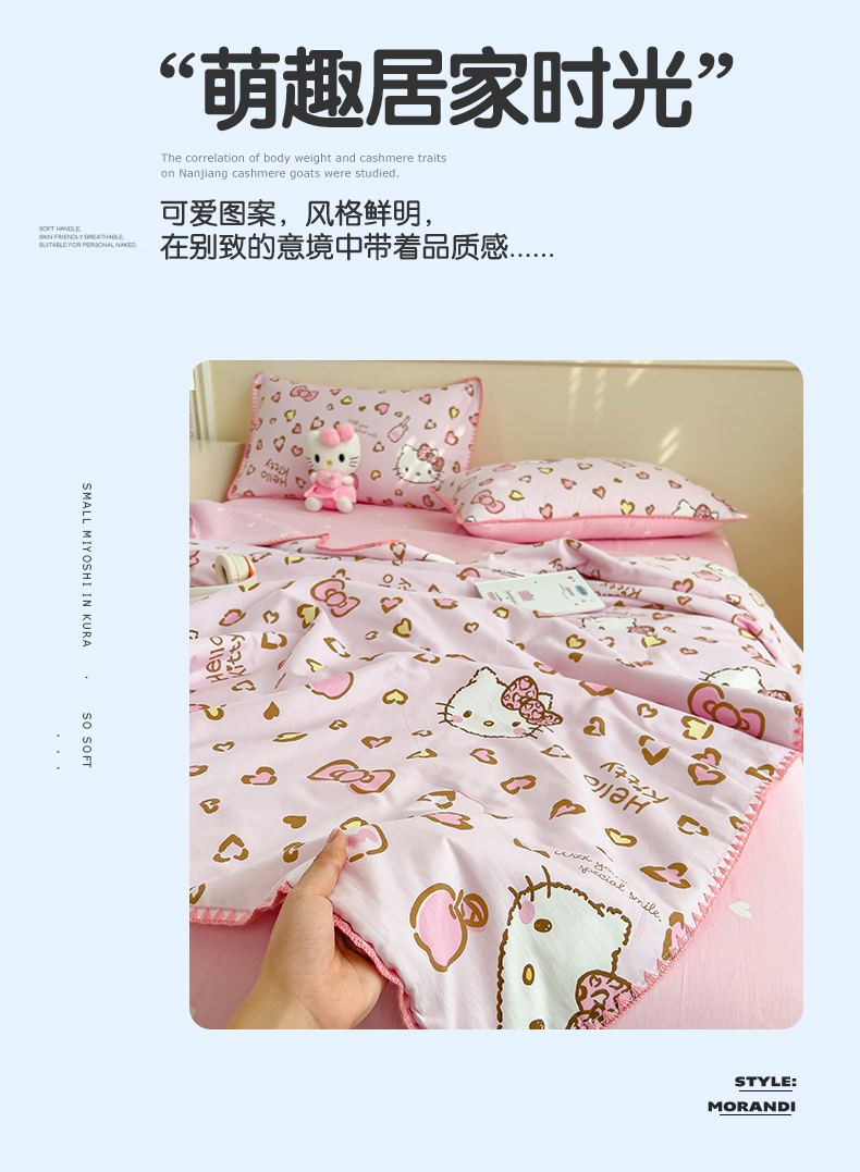 商品名称:兄弟坊 2026新款正版授权卡通全棉13370印花夏被夏凉被儿童被 夏被四件套 甜酷凯蒂猫
