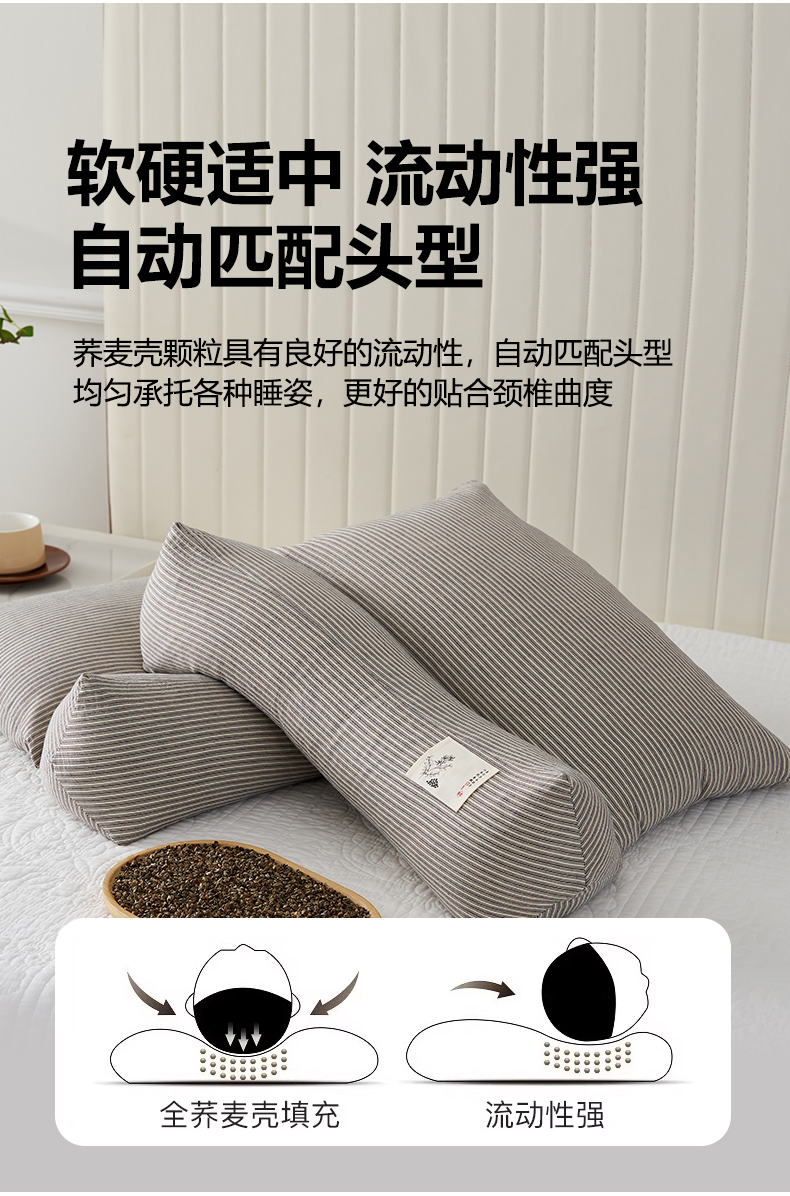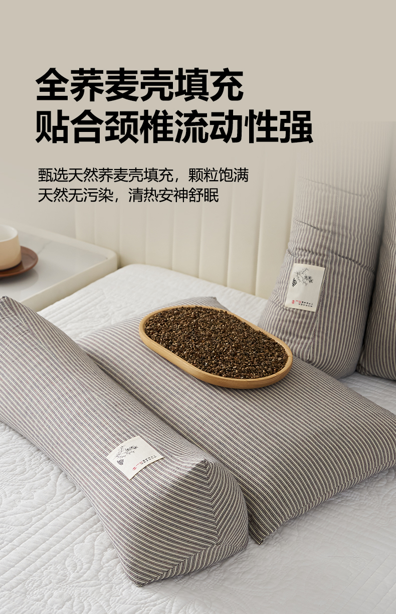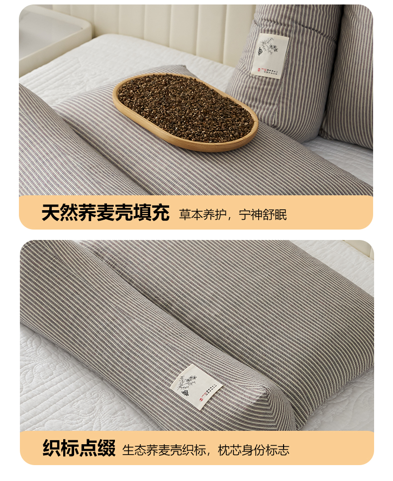 商品名称:乐可 2026新款条纹生态荞麦组合枕枕头枕芯 生态组合枕-深灰