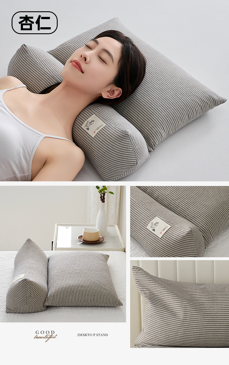 (总)乐可 2026新款条纹生态荞麦组合枕枕头枕芯,生态组合枕-暗粉,生态组合枕-深灰,生态组合枕-杏仁