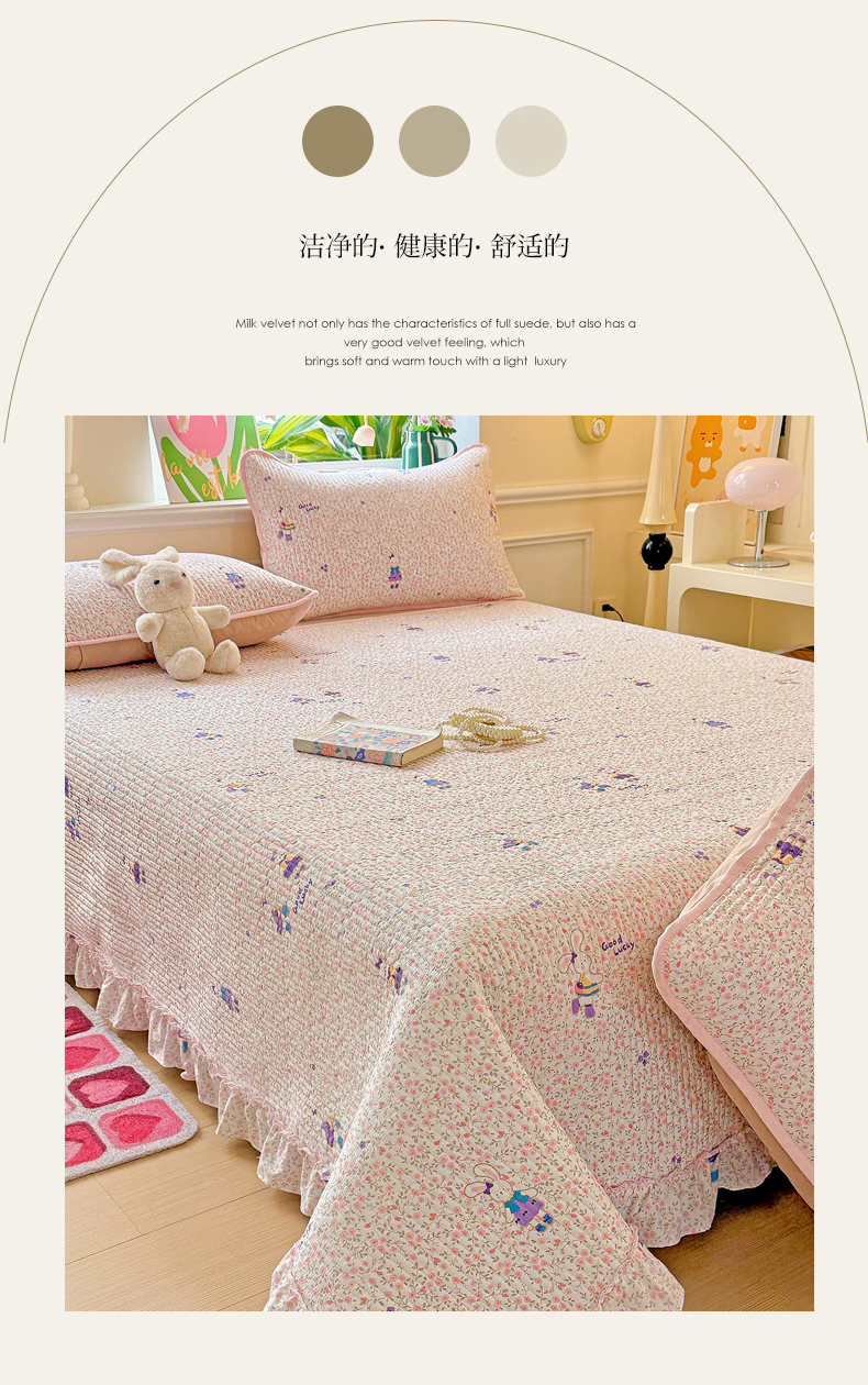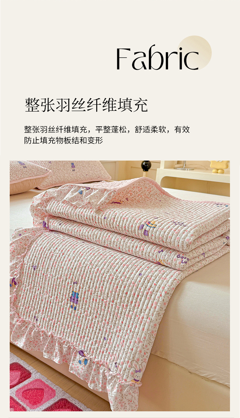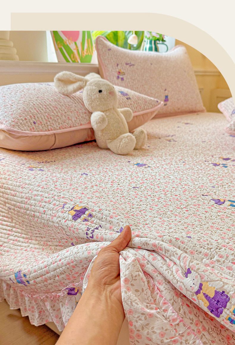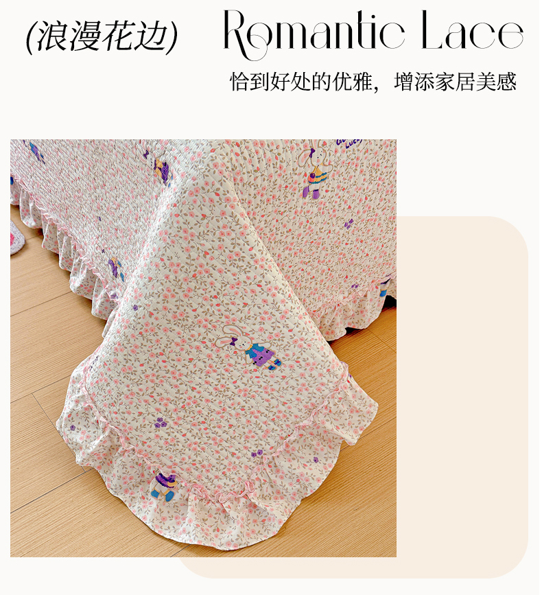 当前位置: 91家纺网 > 商品网购 > 床上用品 > 床盖 > 恒尚居 2026新款云感皱皱纱床盖花边床单双层纱床盖三件套-四季款 花边款-欢乐兔