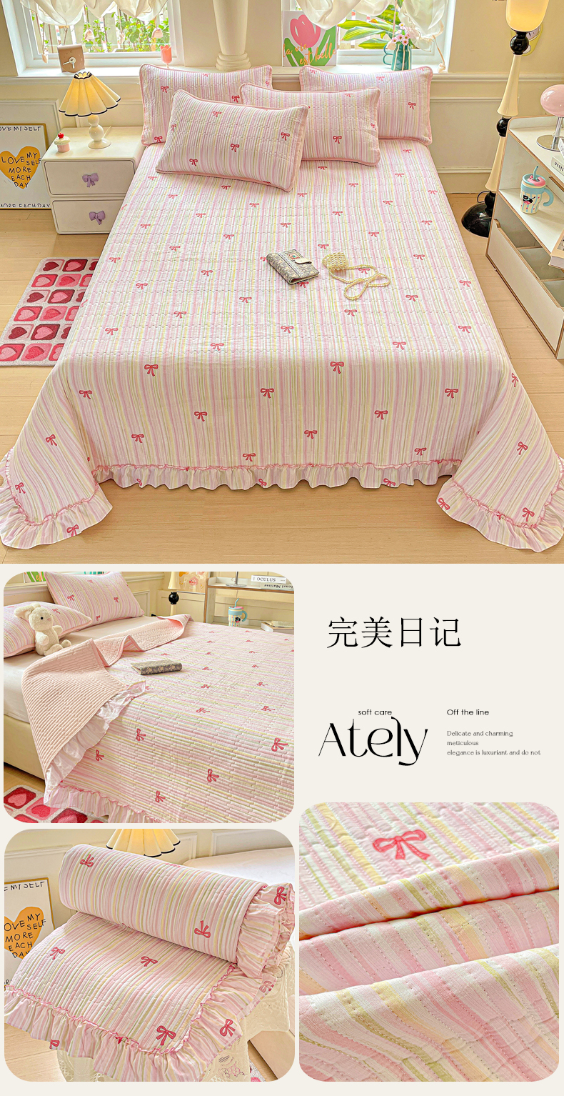 • 91家纺网 家纺一手货源 找家纺 (总)恒尚居 2026新款A类泡芙纱床盖四套件泡芙棉双层纱小花边床垫床褥,波点奶芙小花边,彩虹木马小花边,费尔岛小狗小花边,粉糖泡泡猫小花边,兰格奶狗小花边,奶黄星星人小花边,细格木马小花边,阳光条纹小花边,字母喵喵小花边