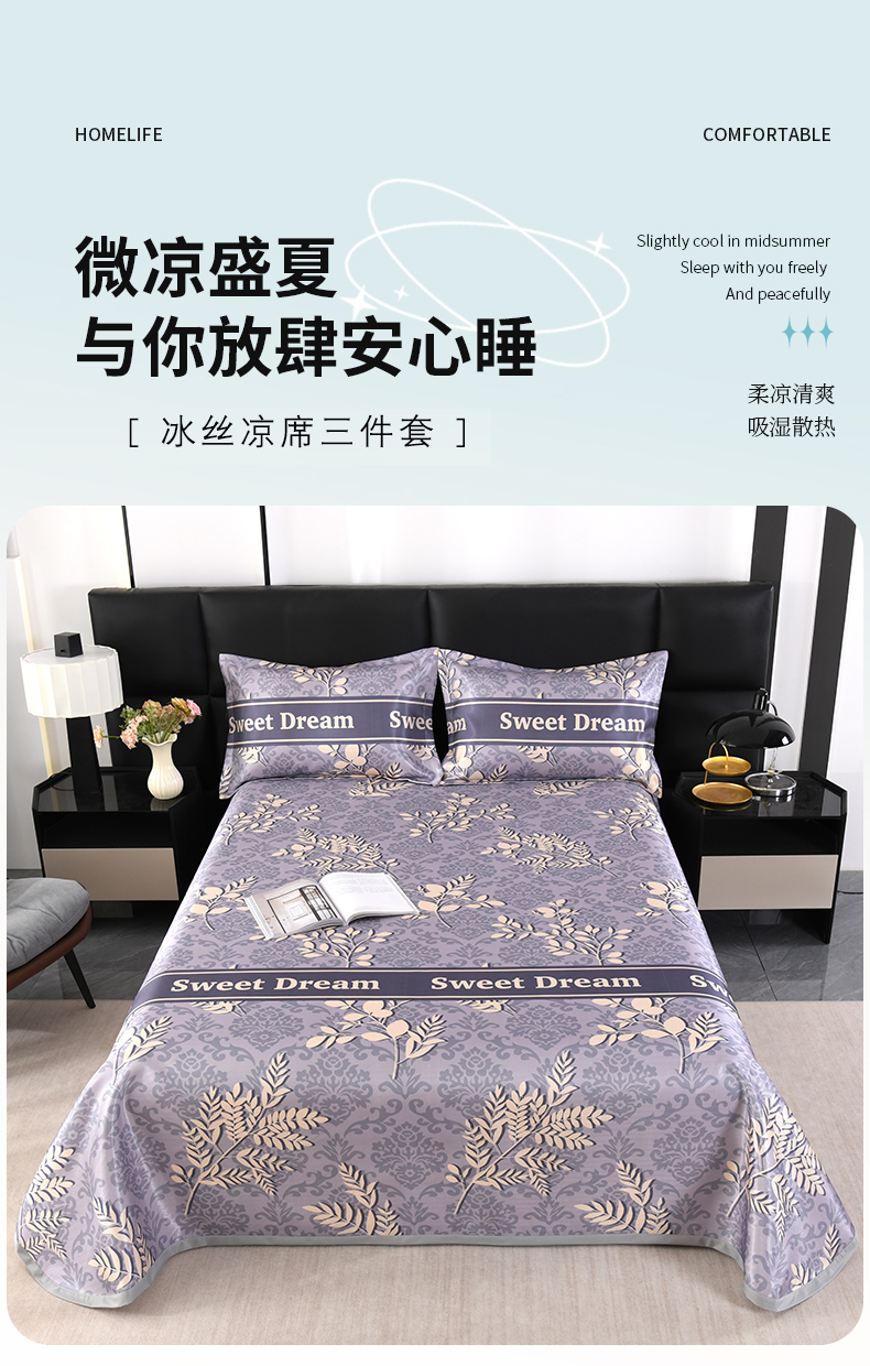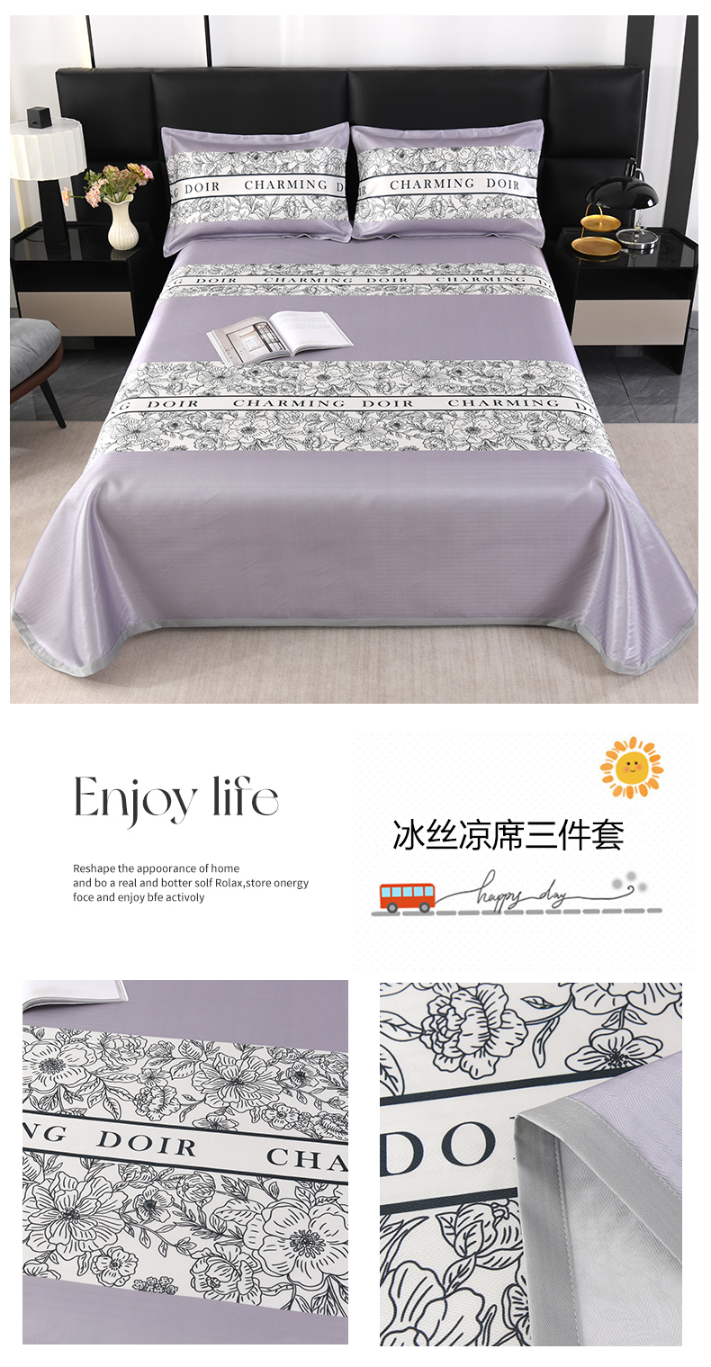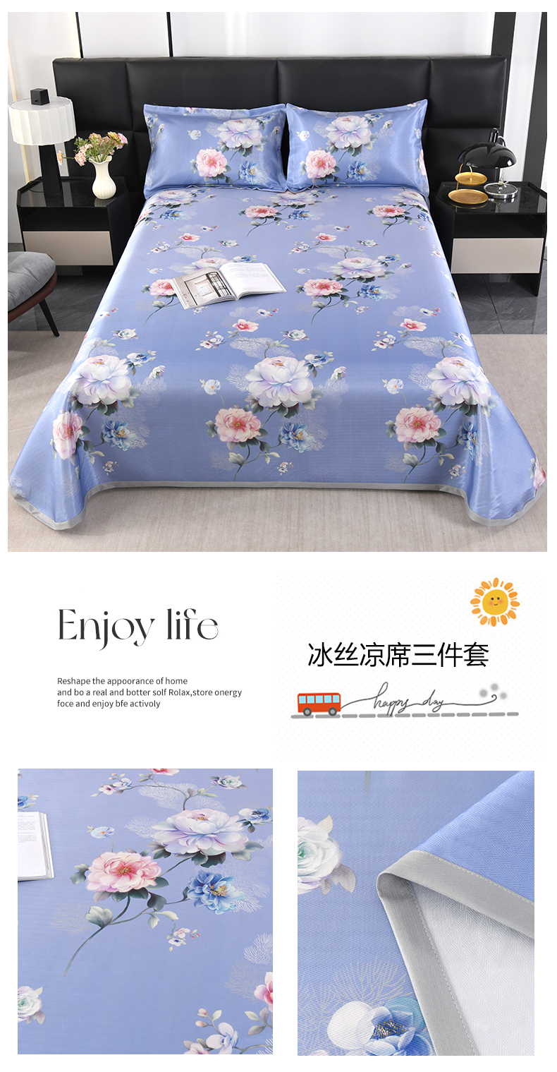 (总)绒品壹家家纺 2026新款立体数码印花凉感丝冰丝席软凉席席子三件套,暴力兔,晨园幽香,发财树 灰,繁花,富丽堂皇,蝴蝶 粉,花舞,花影,花语,铃兰花,轻奢欧式,轻奢生活,清凉一夏 黄,清凉一夏 绿,趣味星,三生有幸 粉,三生有幸 蓝,相思 桔粉,相思 灰,小熊 蓝,幸福鹿,熊猫 绿,叶叶风情,云朵 蓝,马运享通