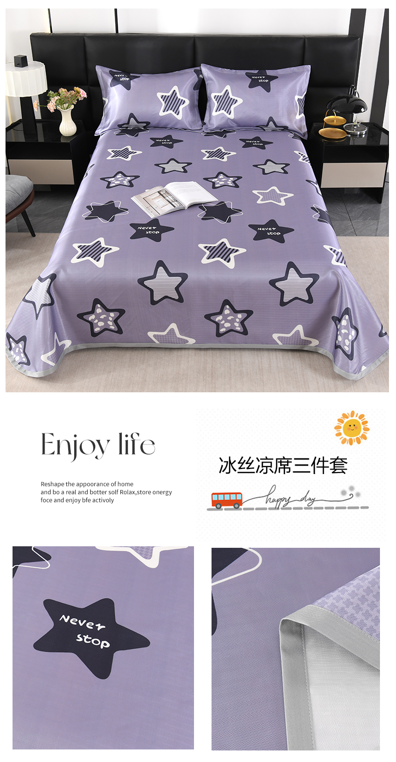 商品名称:绒品壹家家纺 2026新款立体数码印花凉感丝冰丝席软凉席席子三件套 马运享通