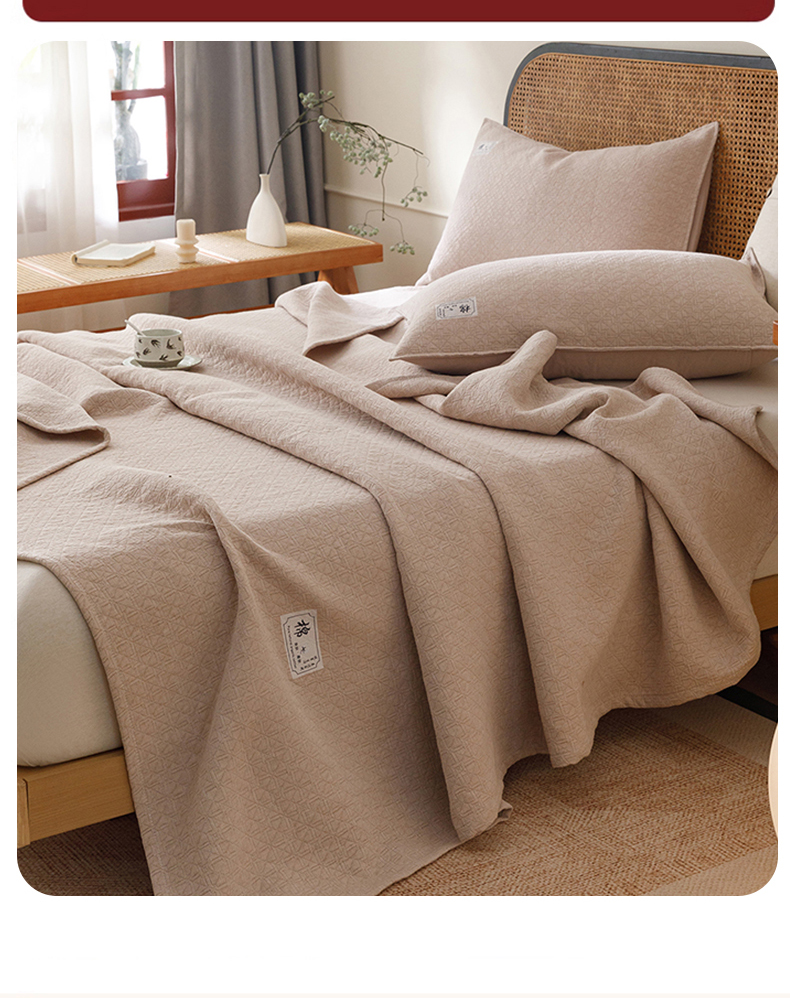 悦然毛巾被 2026新款素色提花全棉三层纱盖毯毛巾被A类休闲毯 素野咖