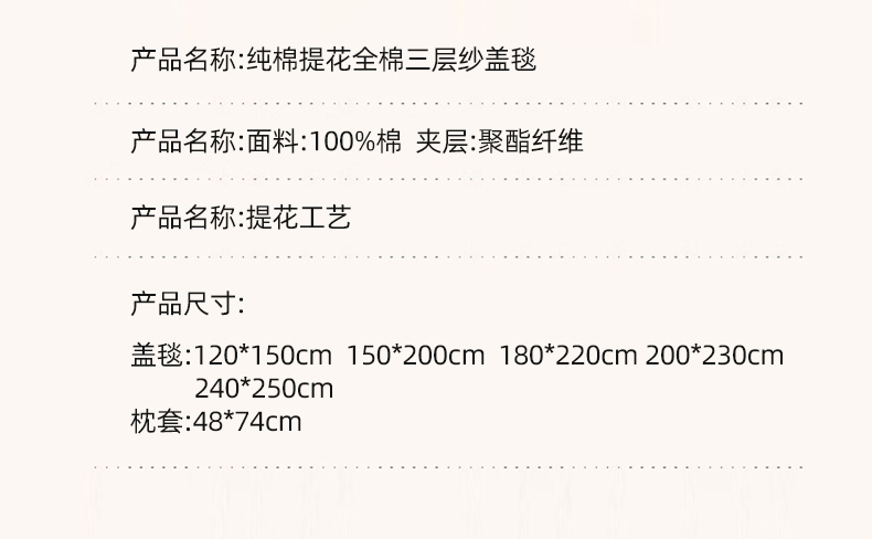 商品名称:悦然毛巾被 2026新款素色提花全棉三层纱盖毯毛巾被A类休闲毯 素野咖