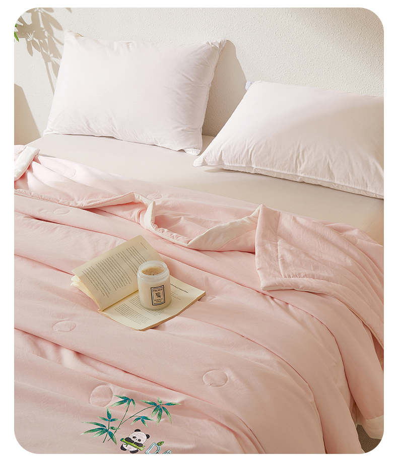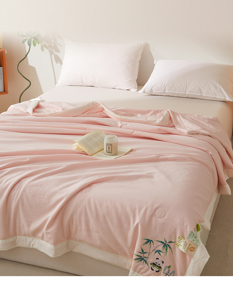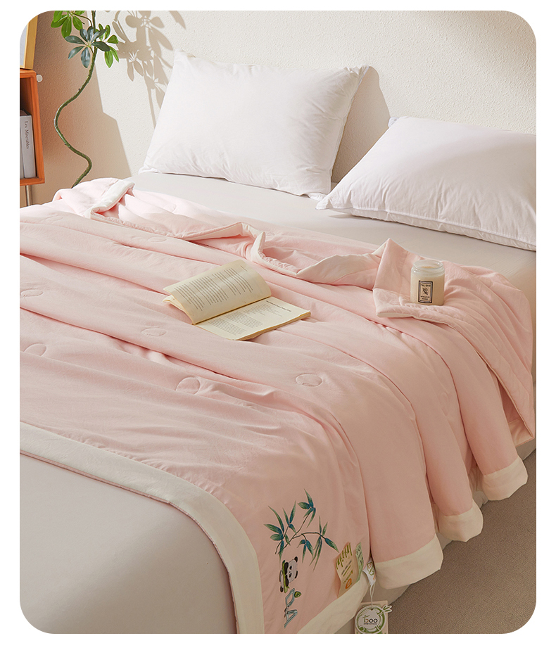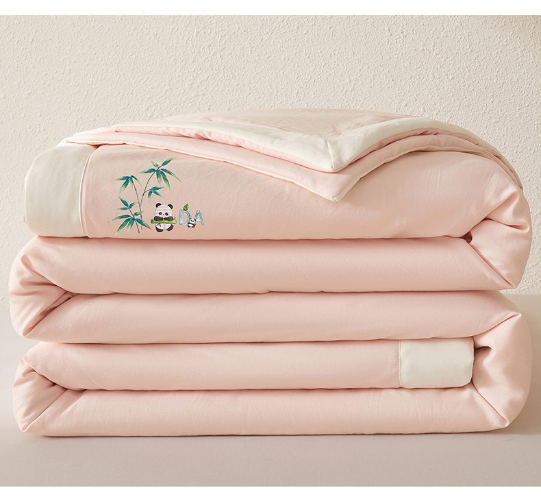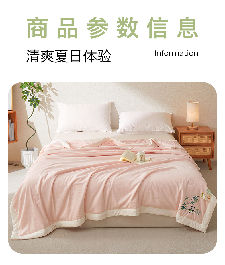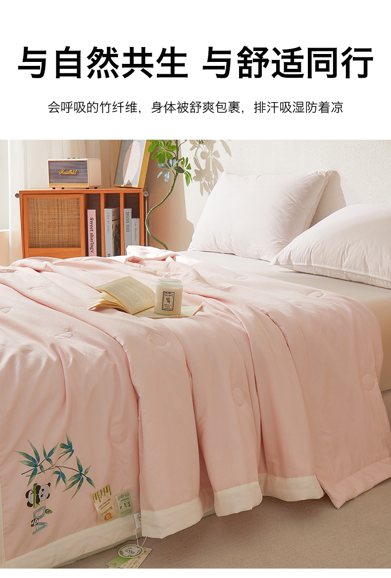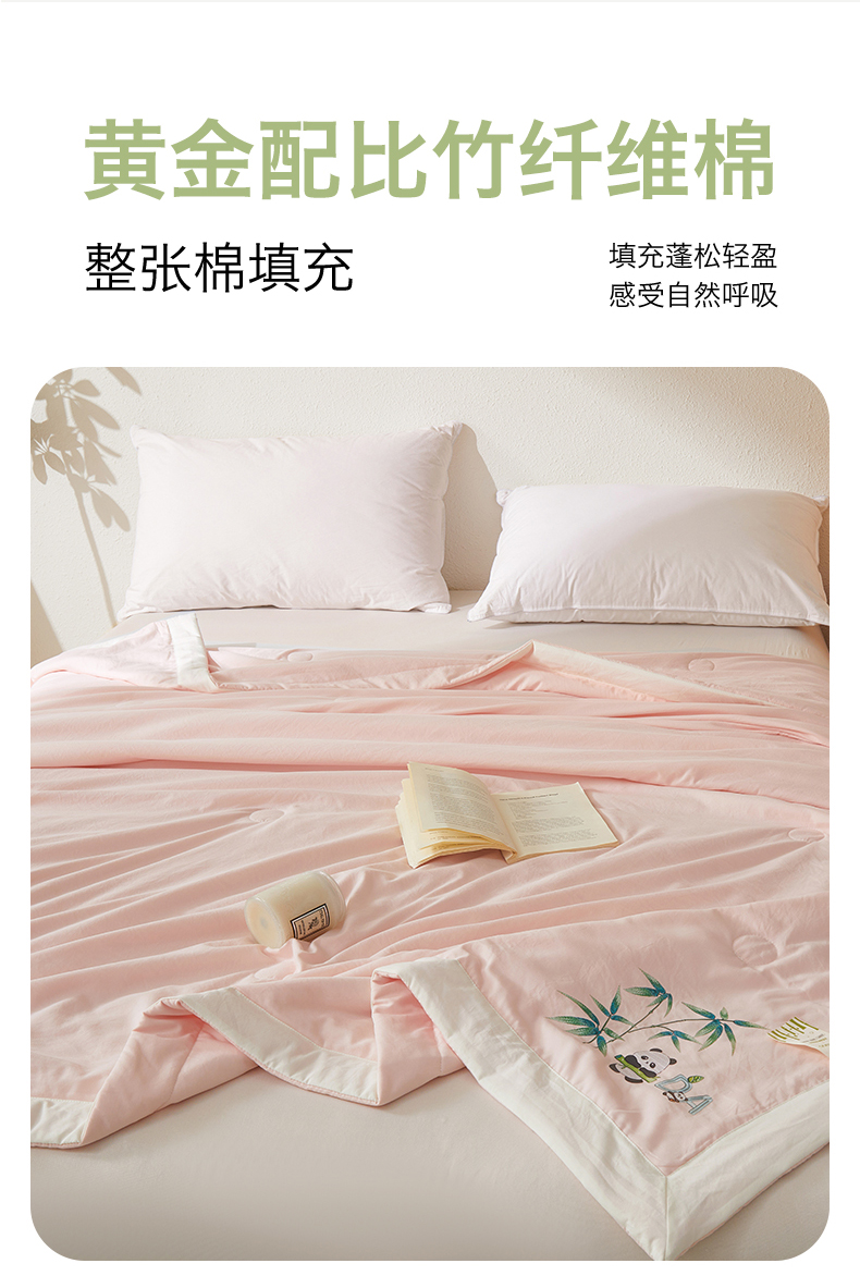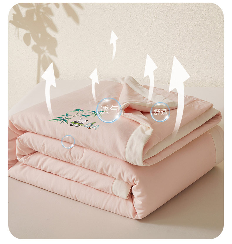 商品名称:招财星家纺 2026新款A类凉感竹纤维夏被空调被可机洗水洗夏被单人宿舍薄款被子(带质检报告买家秀) 熊猫-少女粉