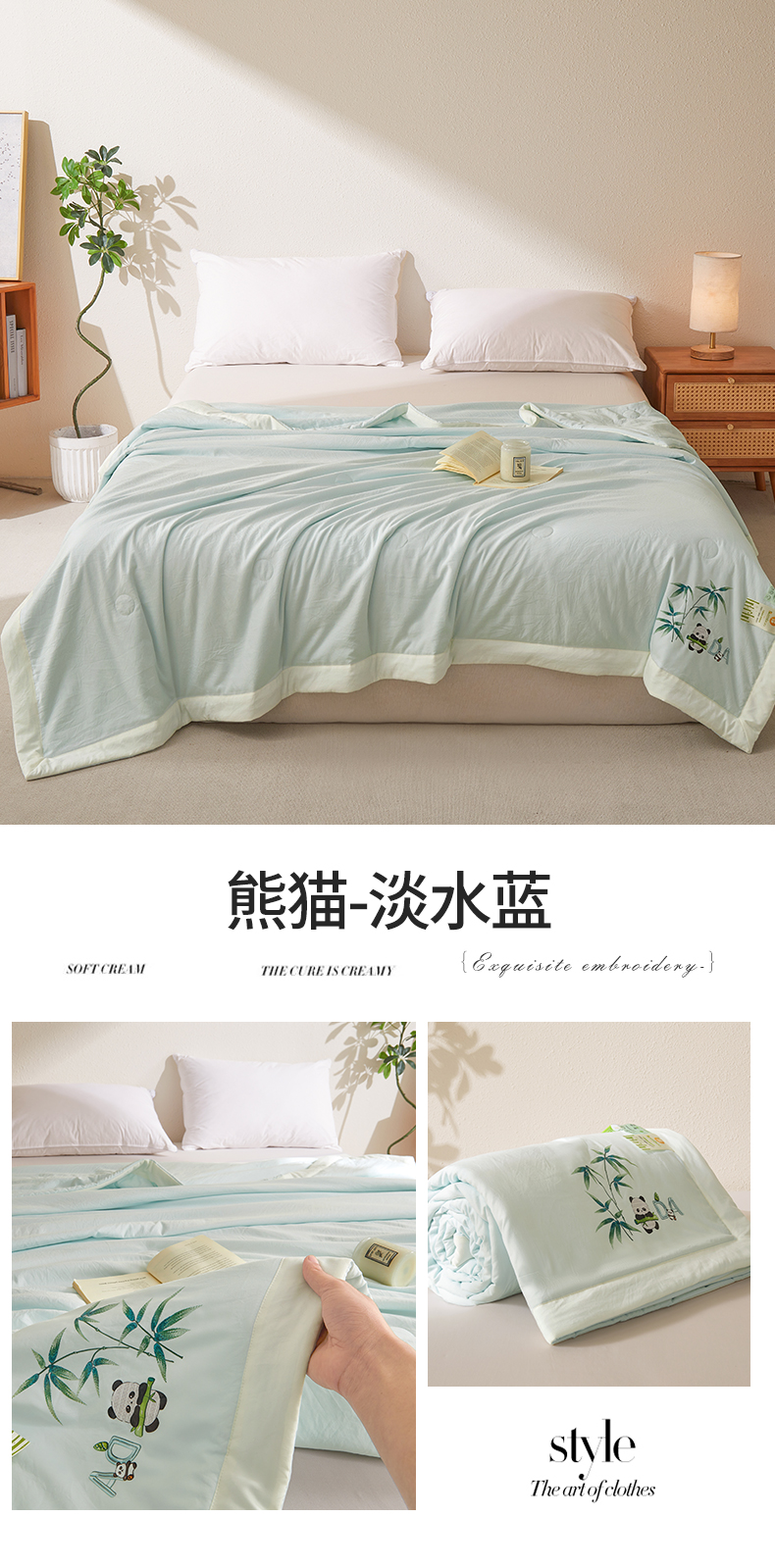 (总)招财星家纺 2026新款A类凉感竹纤维夏被空调被可机洗水洗夏被单人宿舍薄款被子(带质检报告买家秀),熊猫-竹绿,熊猫-本白,熊猫-淡水蓝,熊猫-奶油黄,熊猫-少女粉,熊猫-雾灰