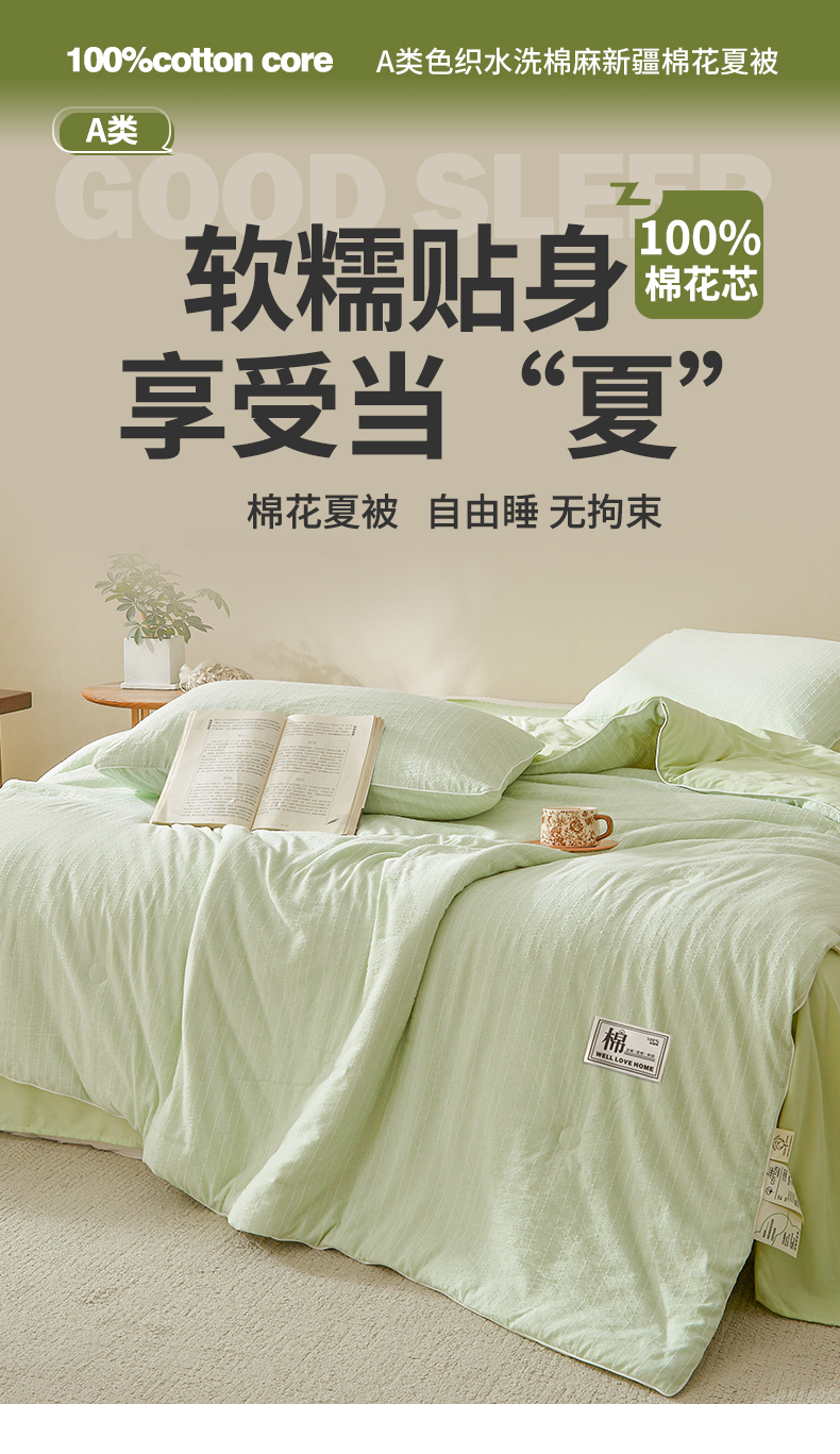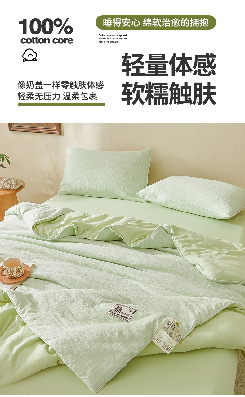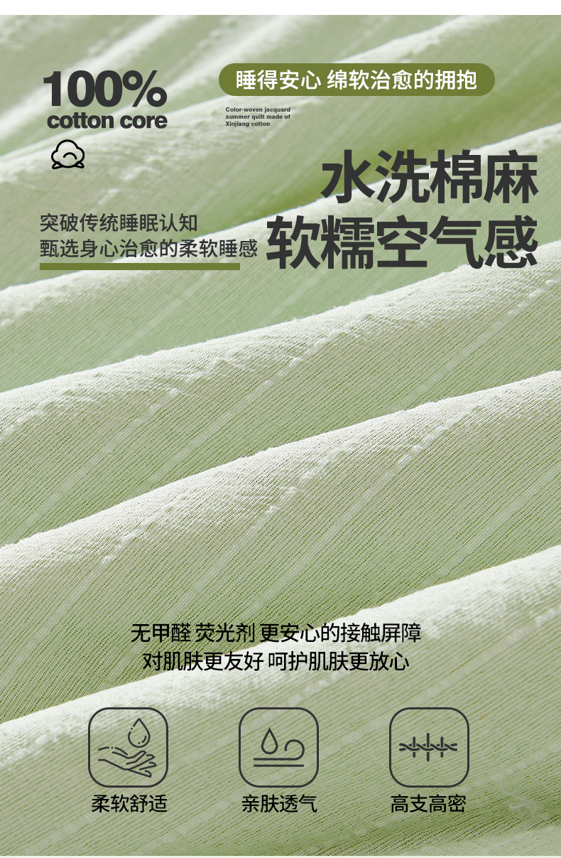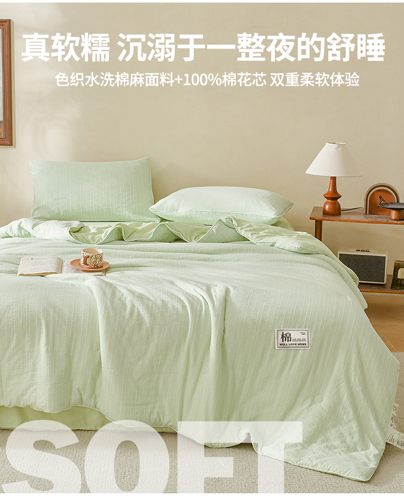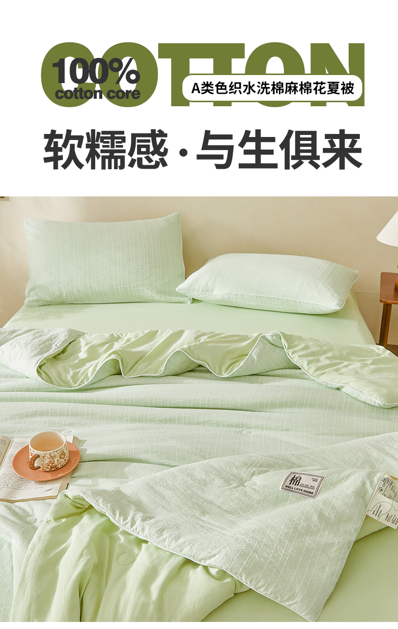 晓时候 2026新款色织水洗棉麻100%新疆棉花被夏被全棉被子夏凉被空调被 薄荷绿