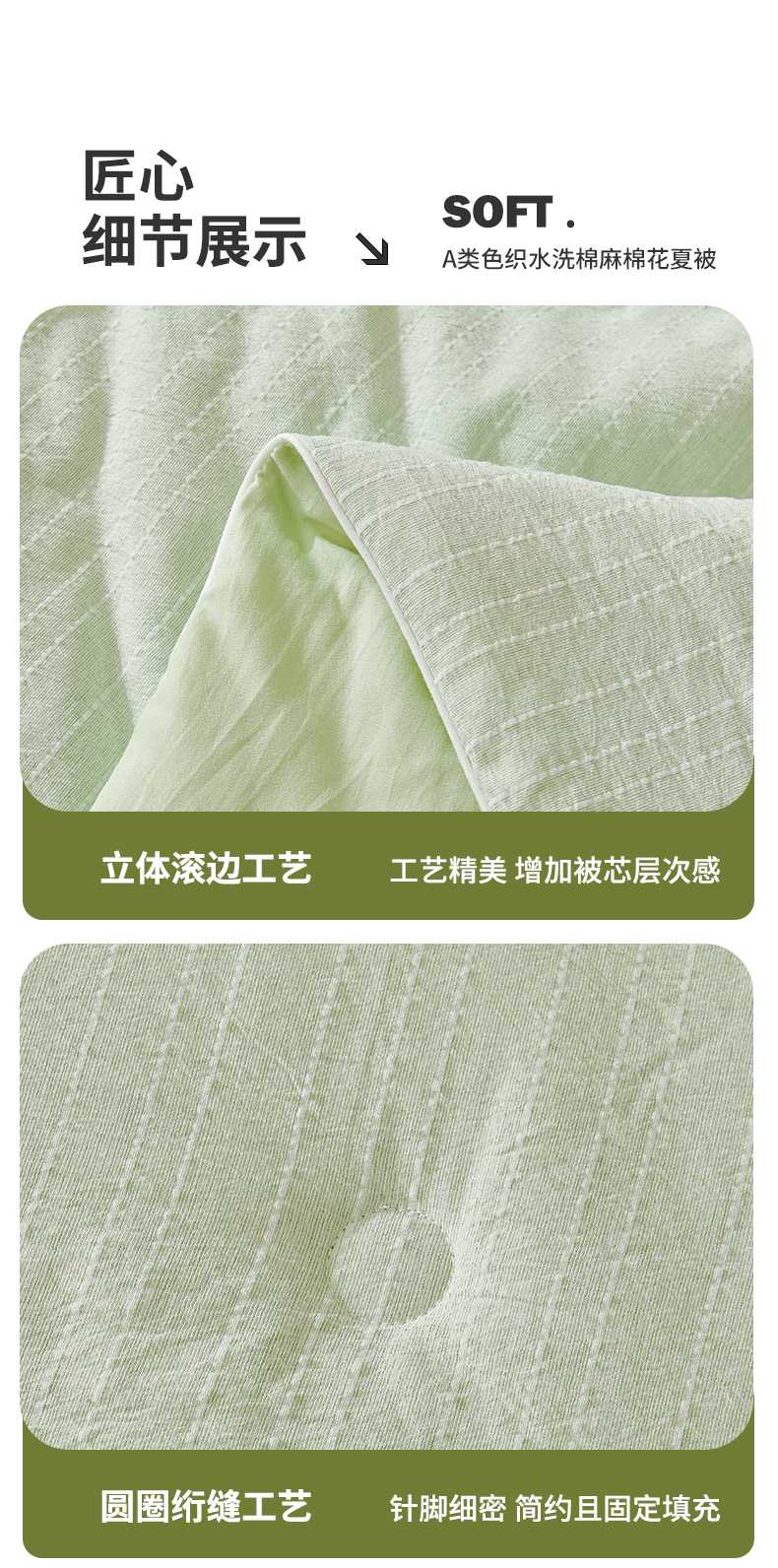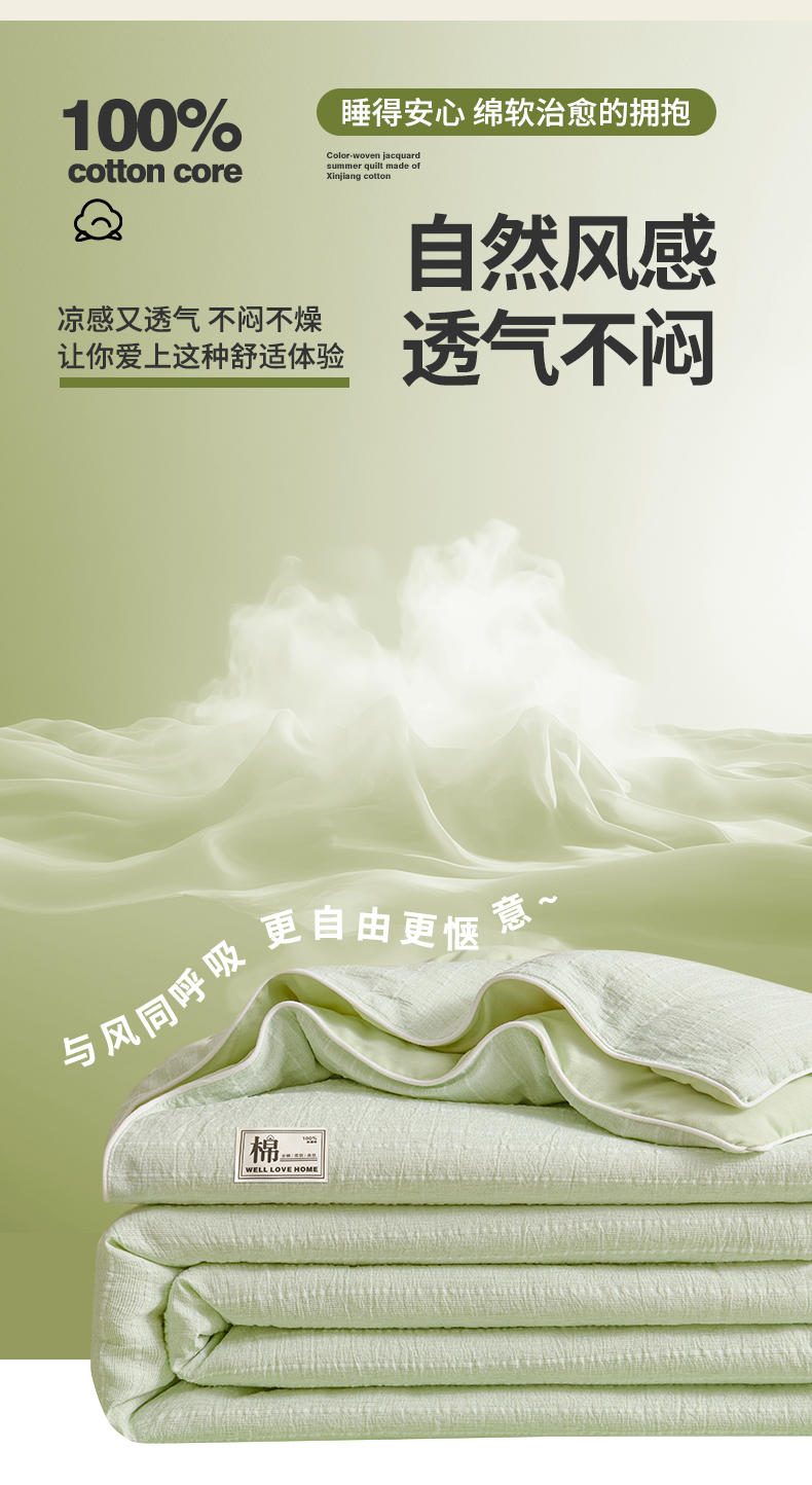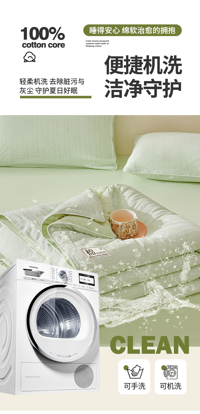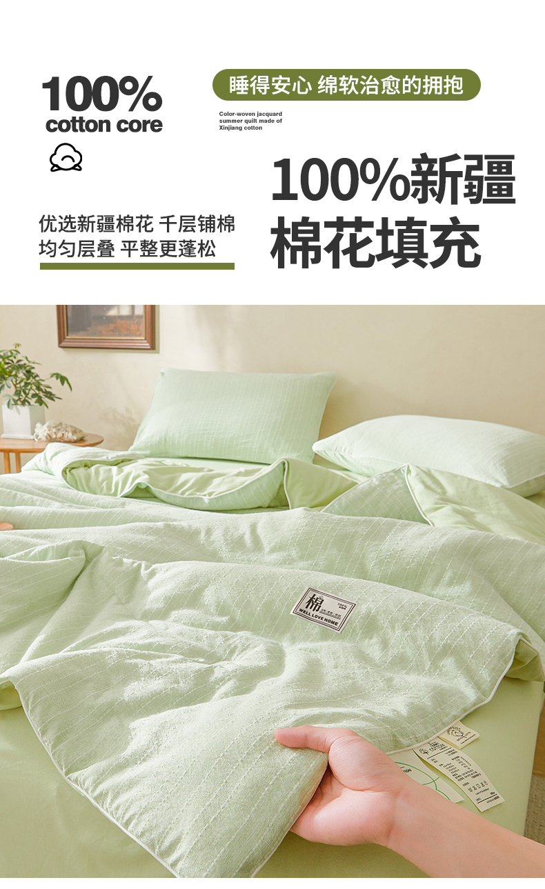 晓时候 2026新款色织水洗棉麻100%新疆棉花被夏被全棉被子夏凉被空调被 薄荷绿