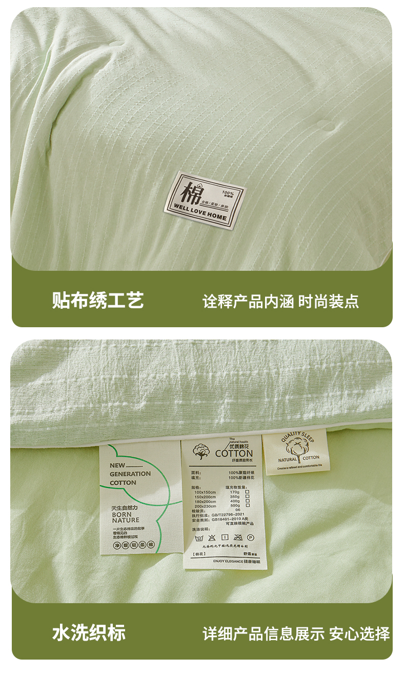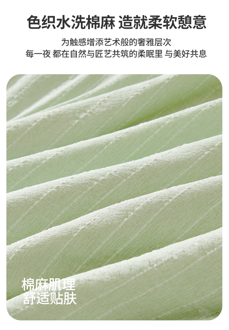 商品名称:晓时候 2026新款色织水洗棉麻100%新疆棉花被夏被全棉被子夏凉被空调被 薄荷绿