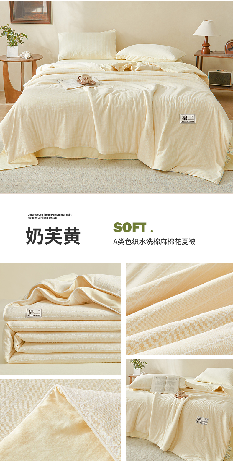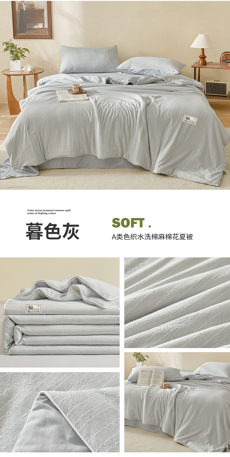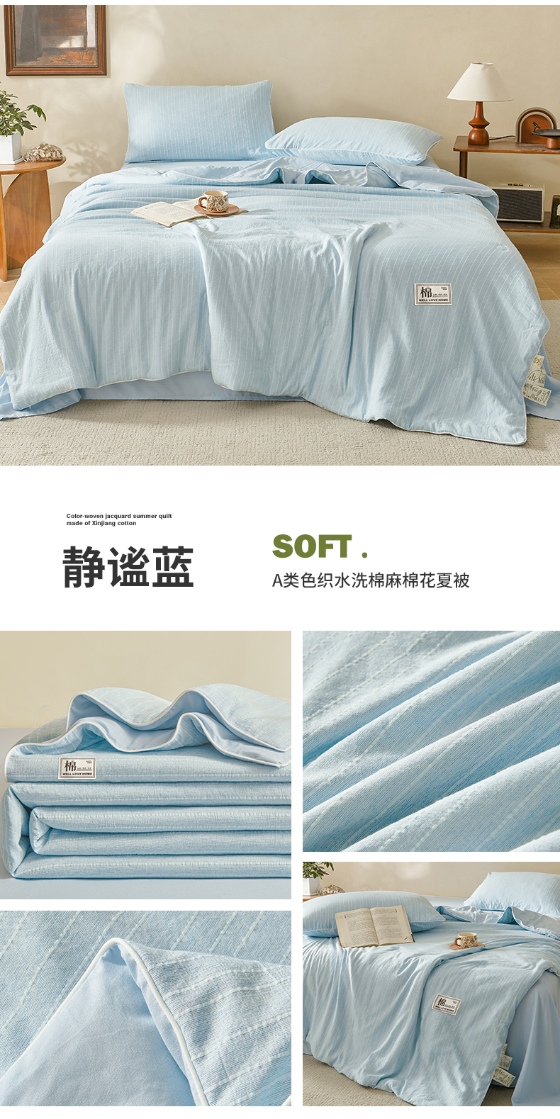 (总)晓时候 2026新款色织水洗棉麻100%新疆棉花被夏被全棉被子夏凉被空调被,静谧蓝,薄荷绿,暮色灰,奶芙黄,香妃粉,珍珠白