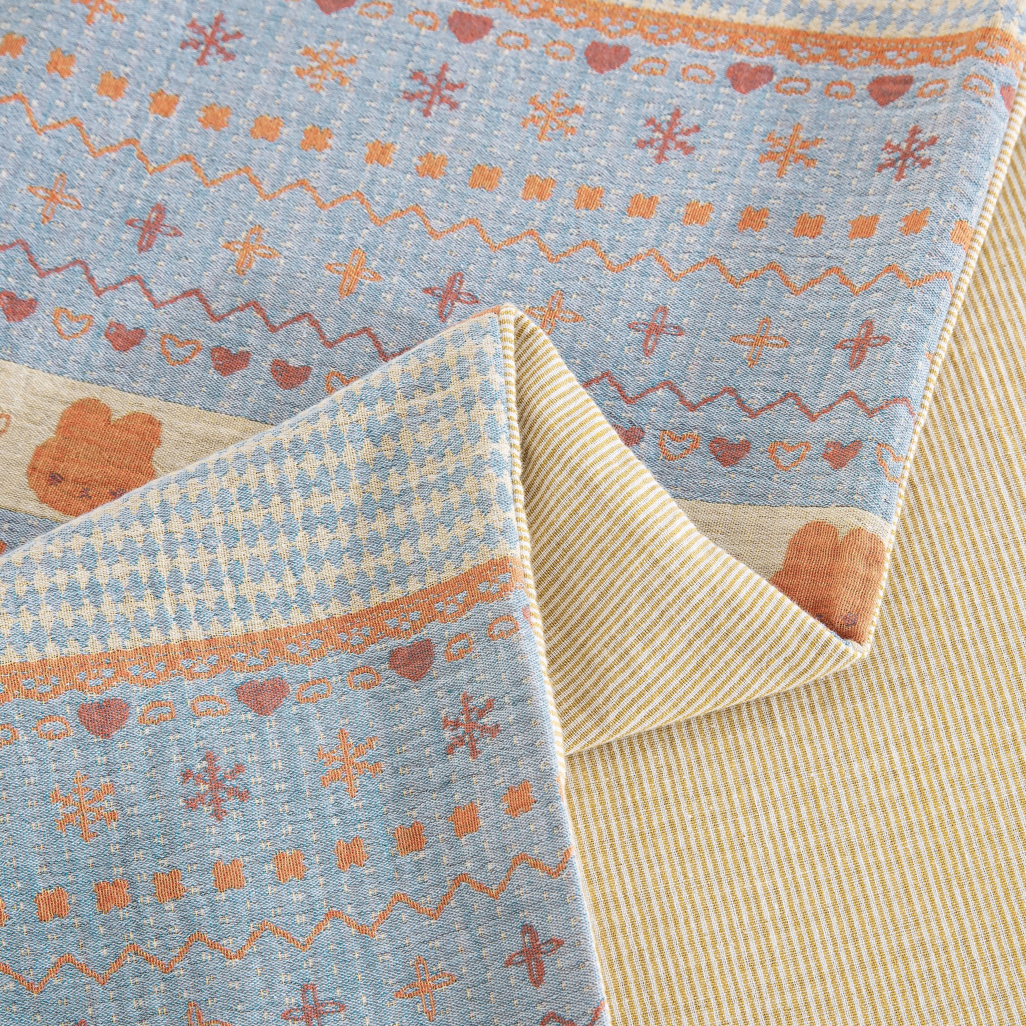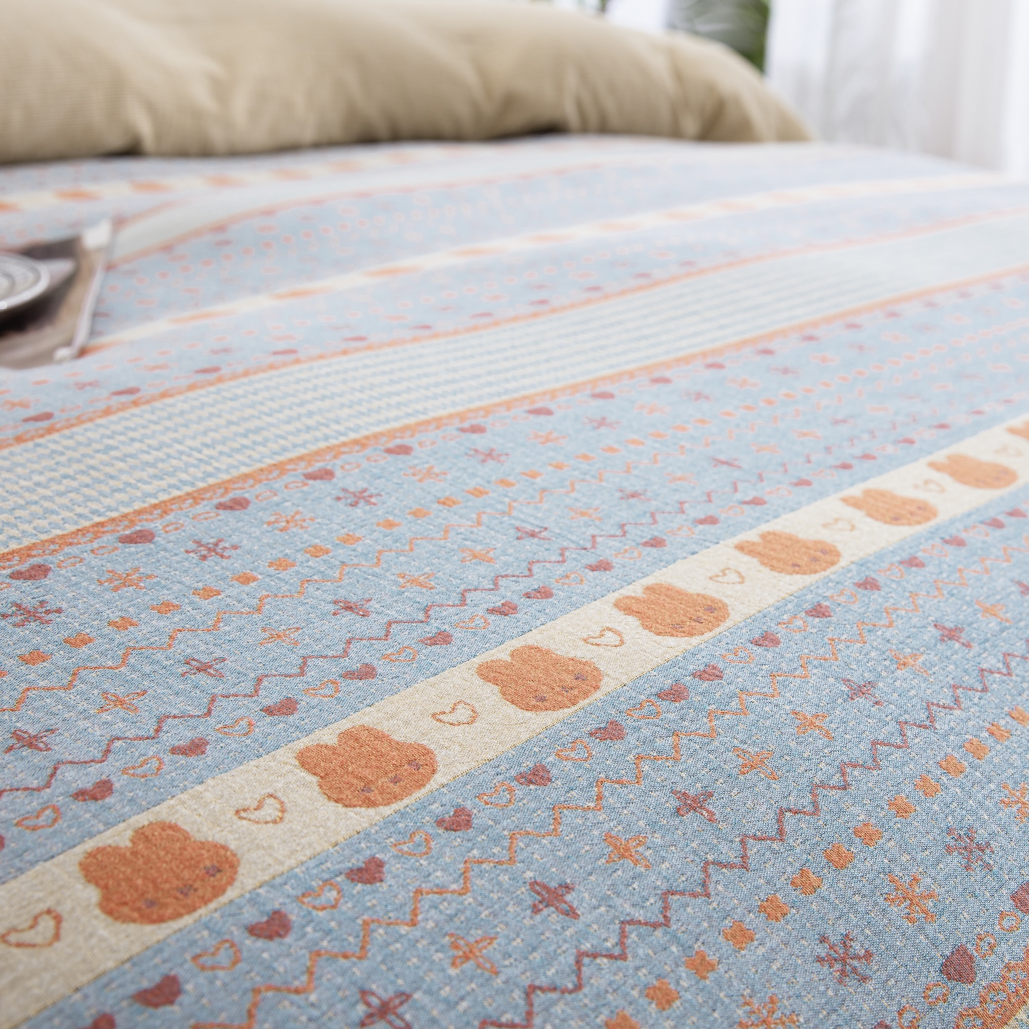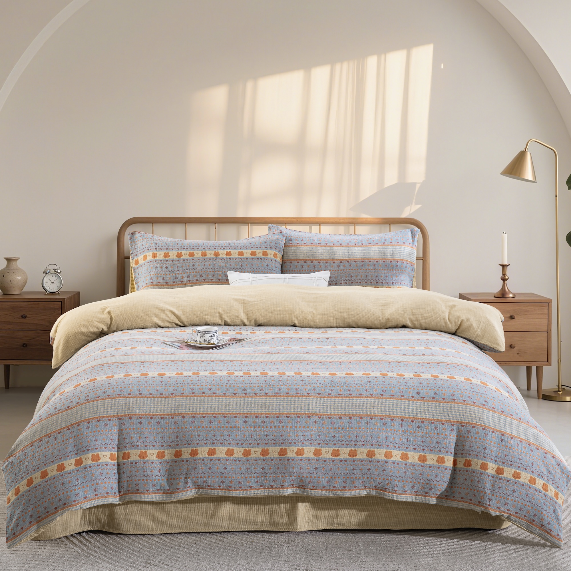 商品名称:(总)仰望棉麻双层纱供应链 2026新款全棉色织提花双层纱四件套-奶糖兔