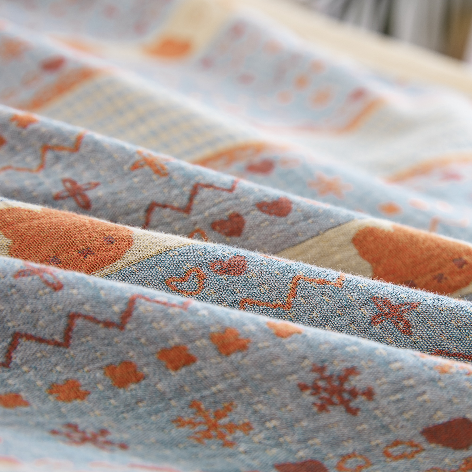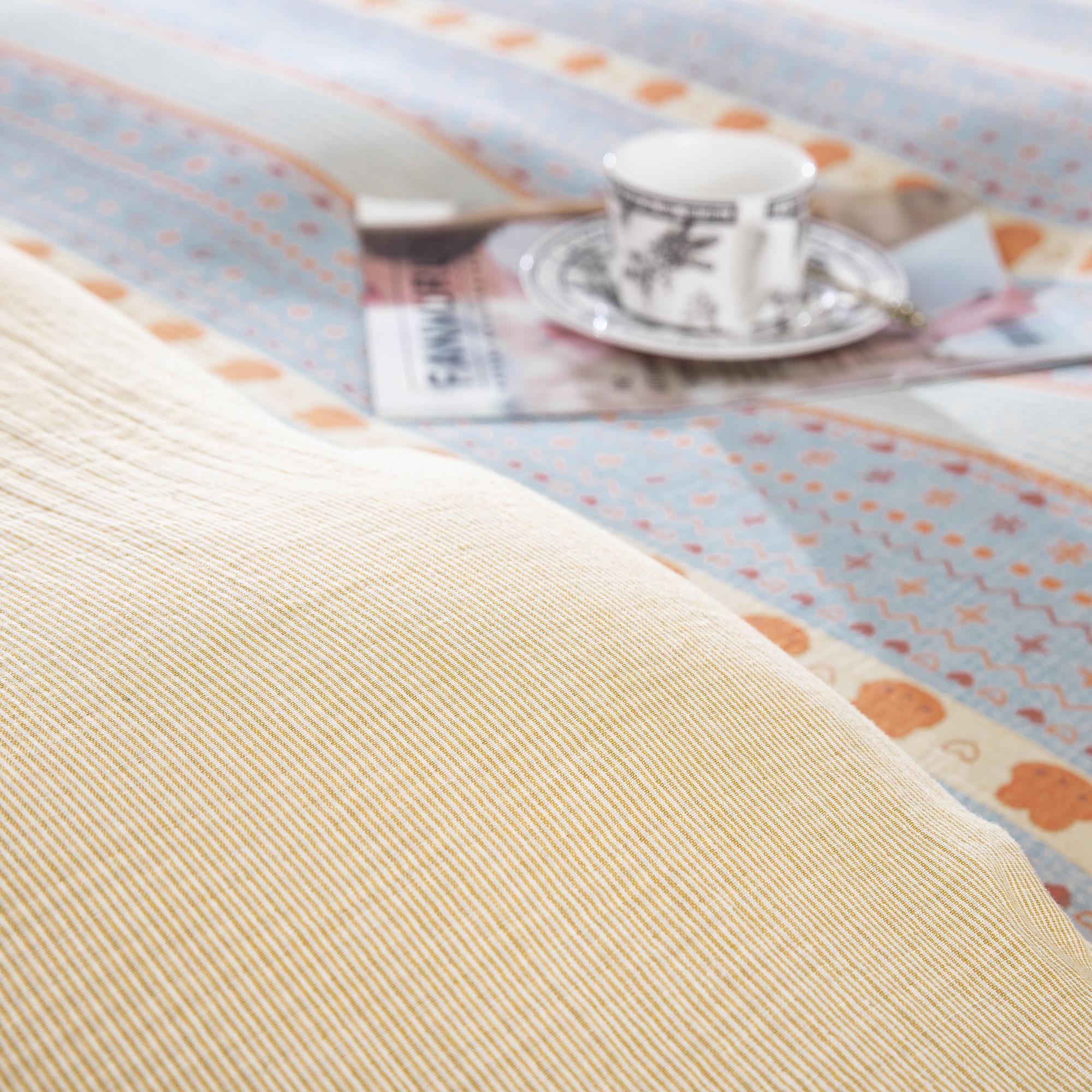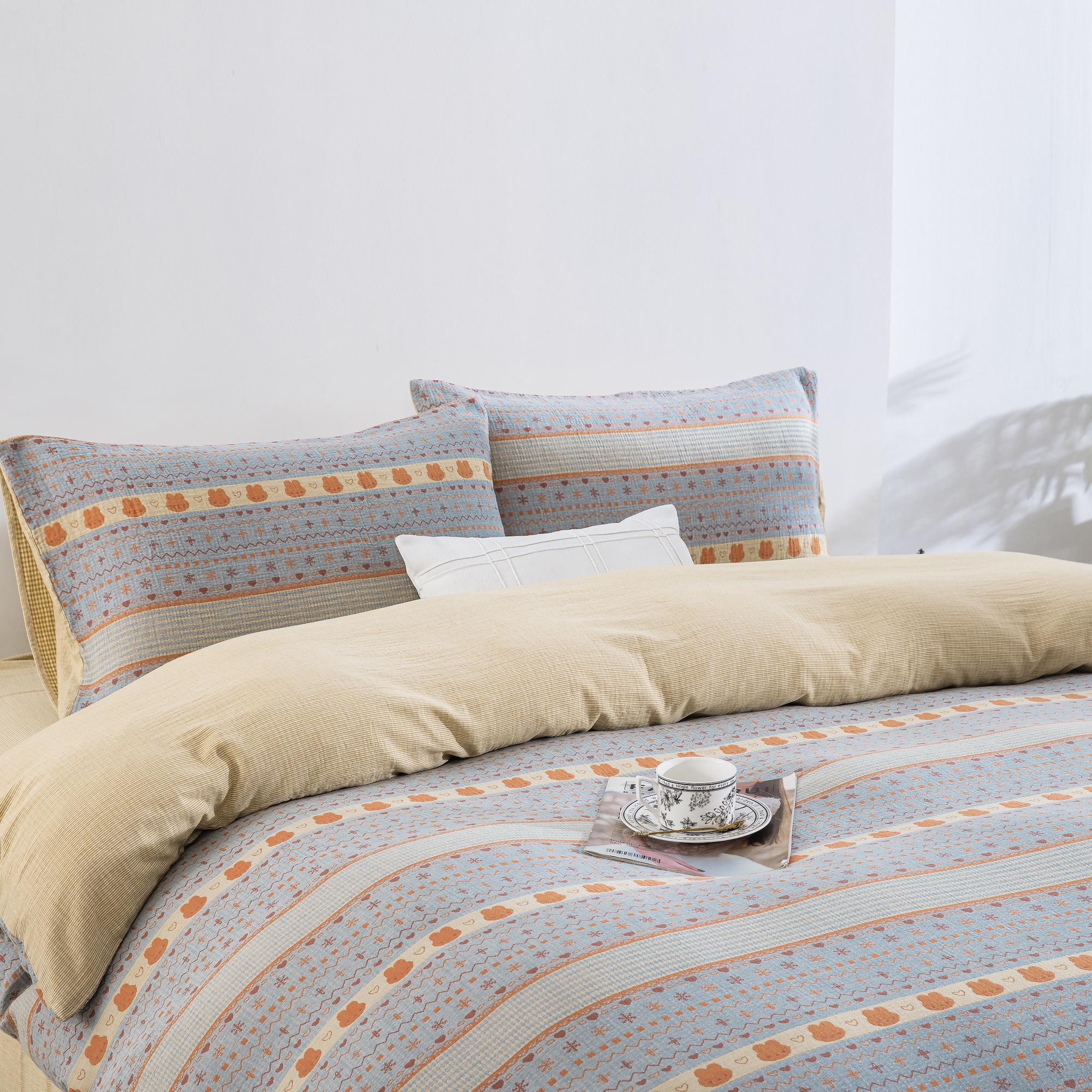 (总)仰望棉麻双层纱供应链 2026新款全棉色织提花双层纱四件套-奶糖兔