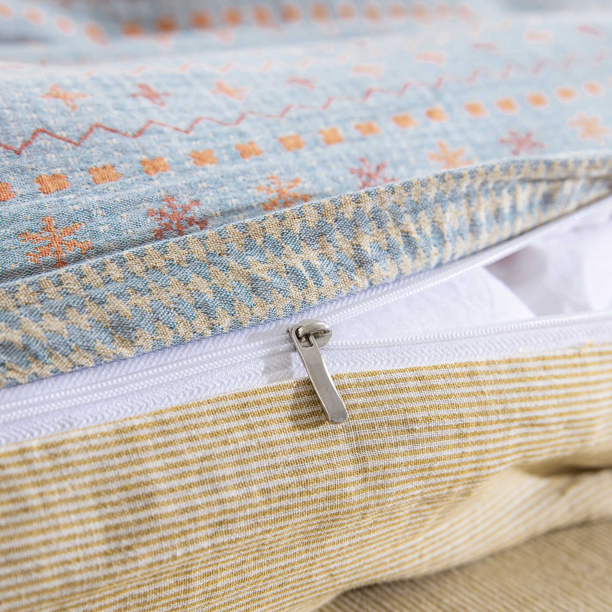 (总)仰望棉麻双层纱供应链 2026新款全棉色织提花双层纱纽扣款四件套-森意棉棉,森意棉棉