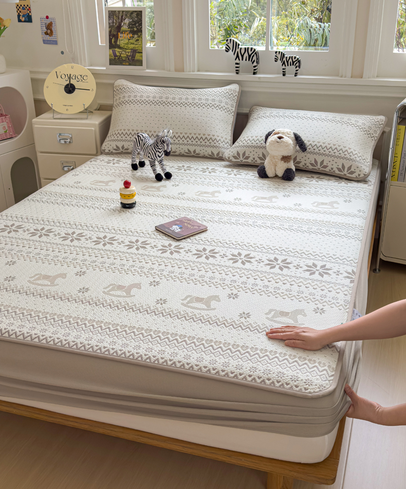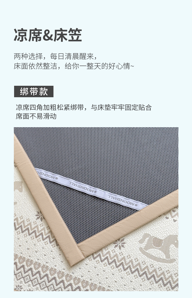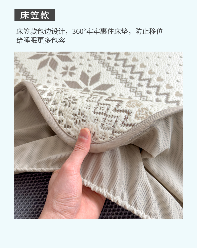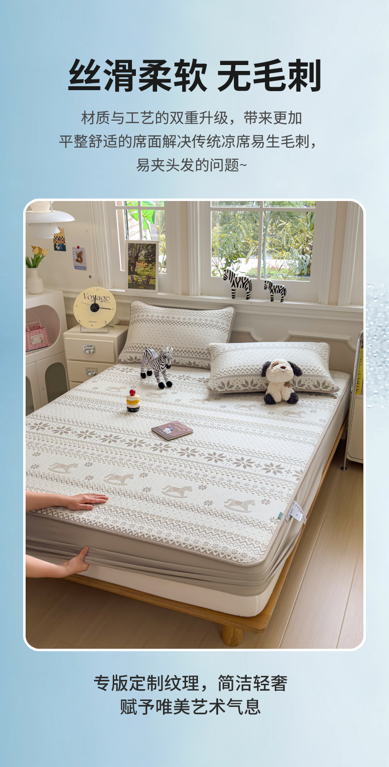 (总)席世家 2025春夏新款430g凉感豆豆床裙席凉席席子-幻影系列,幻影-米灰,幻影-蜜裸粉,幻影-松灰,幻影-星雾蓝